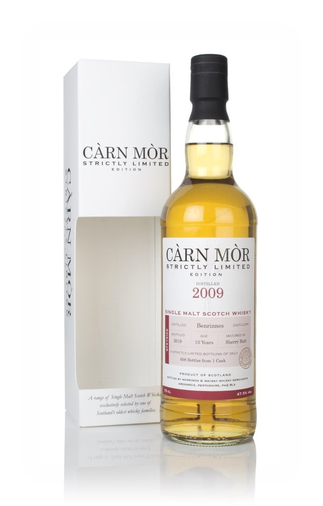 A Càrn Mòr bottling of Benrinnes, which was distilled in 2009. The Speysider was aged in a sherry butt for a decade, and was only drawn from the cask once it was 10 years old. The butt yielded 608 bottles for the Strictly Limited range at 47.5% ABV.