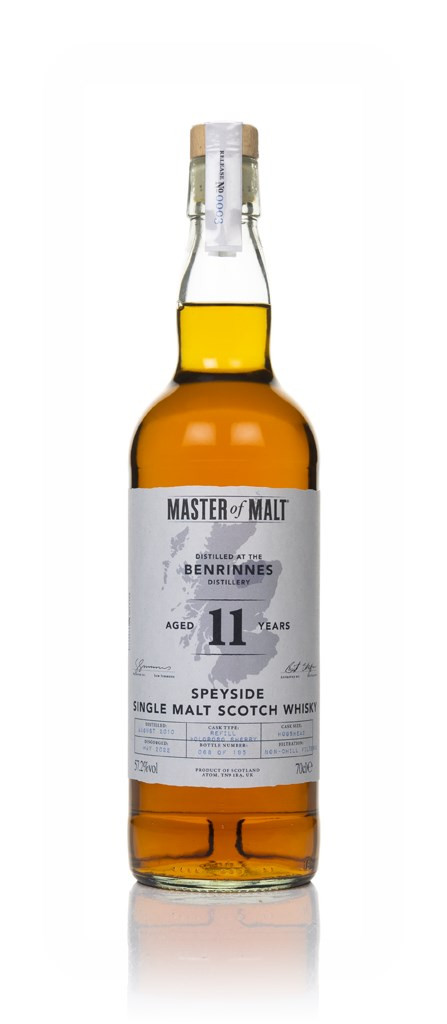 Well, would you look at what we have here? It's a single malt from Benrinnes, and it joins the independent range of bottlings from us – Master of Malt! After checking over our stash of splendid spirits, this one was looking good and ready for bottling, having spent a total of 11 years maturing, including a finishing period in ex-oloroso hogsheads. The casks were cracked open in 2022, unleashing a total of 195 bottles at a hearty 57.2% ABV. A drop of water can certainly help to open up the flavours here.