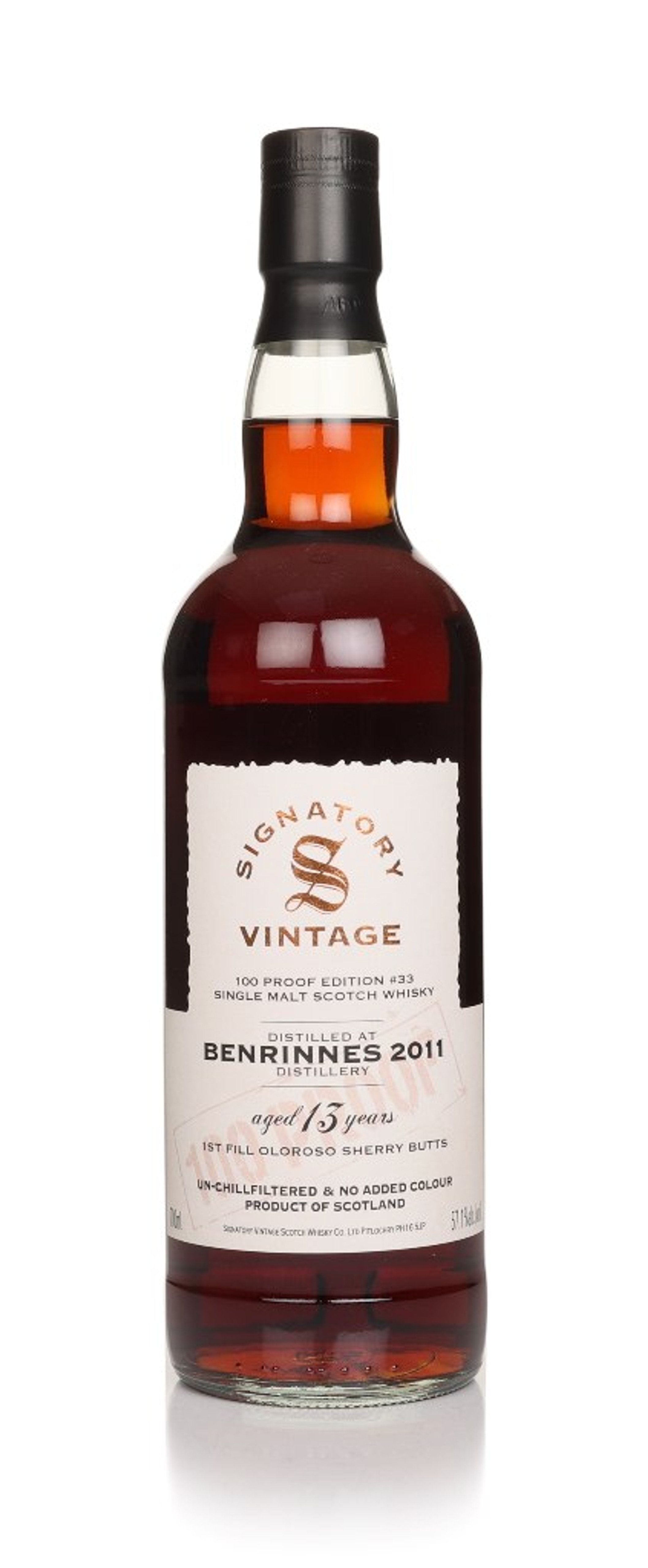 Distilled at Benrinnes in 2011, this single malt spent the next 13 years maturing in a host of first-fill oloroso sherry butts. The casks were opened by independent bottler Signatory, bottling up the whisky at a hearty 57.1% ABV, without chill filtration or artificial colouring as the 33rd instalment in its 100 Proof Edition series.