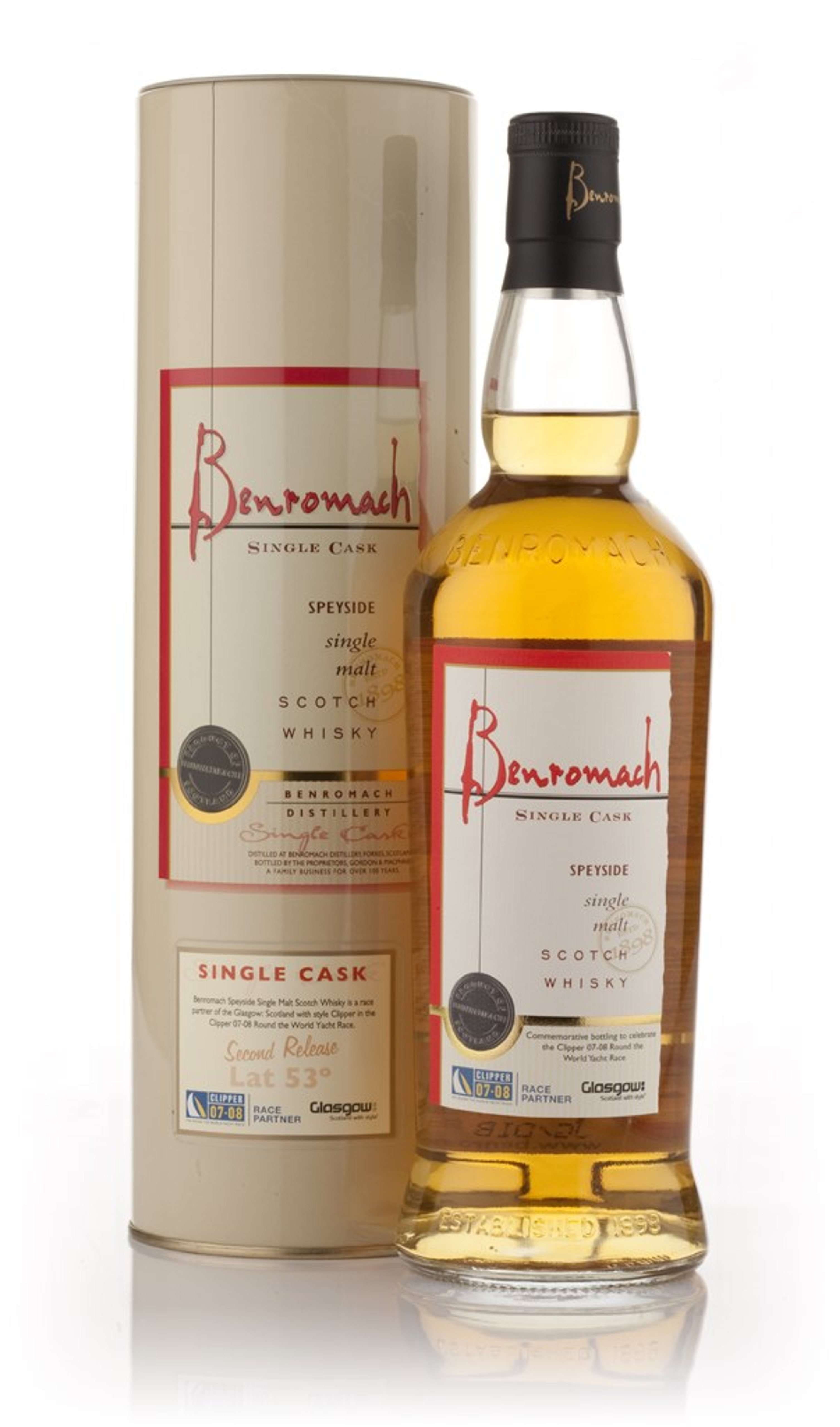 This is part of a release of three special single cask bottlings which commemorate the association of Benromach and the Glasgow: Scotland with Style Clipper which participated in the Clipper 08-08 Round the World Yacht Race. This represents Liverpool at the 53rd line of latitude.