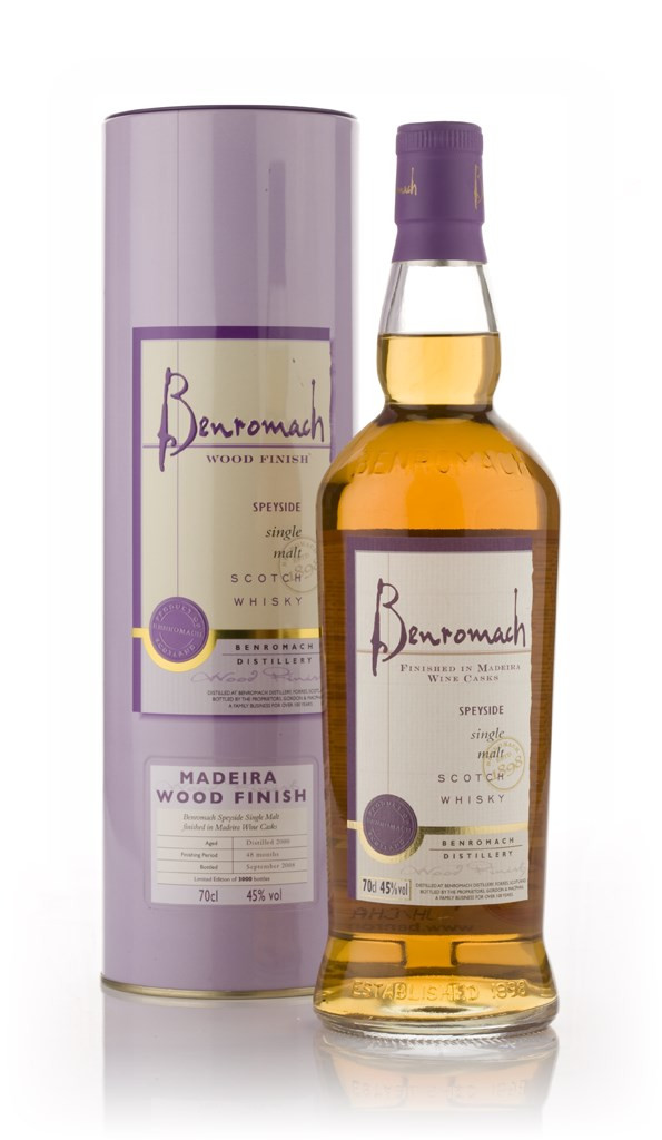 An 8 year old bottling this Benromach single malt was distilled in 2000 and finished in Madeira casks and exhibits all the character one would hope for from a dessert wine cask. A thick, chewable dram.
