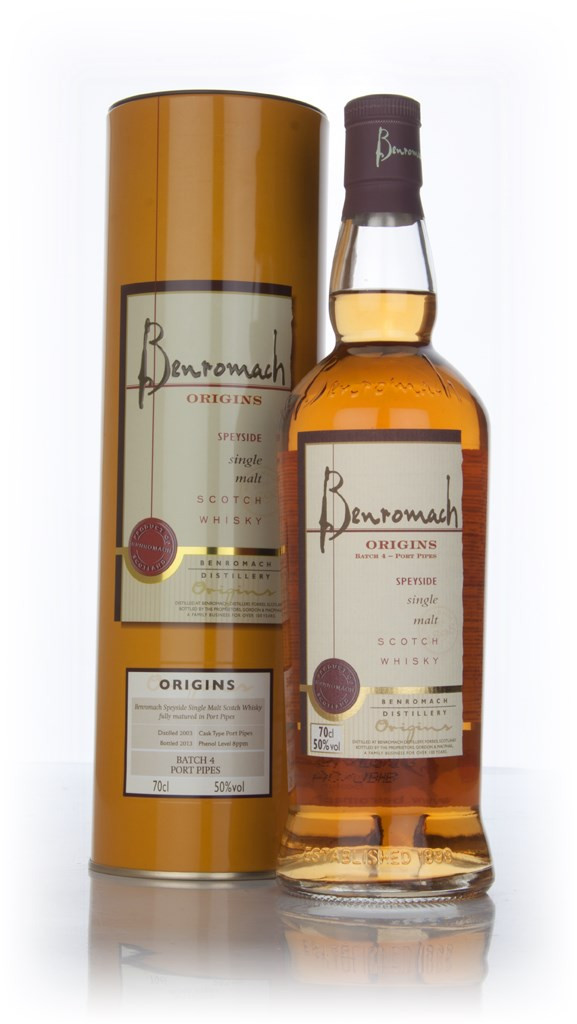 Batch 4 of Benromach's Origins range, bottled in 2013, is matured entirely in first fill Port pipes and peated to a level of 8ppm. The idea behind the range is to highlight how changing different factors during production results in different characteristics in the final spirit.