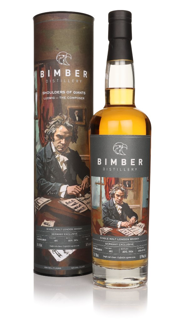 From London's Bimber Distillery, this English single malt is part of the Shoulders of Giants series which pays homage to significant people and their contributions. This particular release celebrates Ludwig van Beethoven. It was aged in a single bourbon cask which was filled into 242 bottles without chill filtration or artificial colourings at a strength of 58.7% ABV.