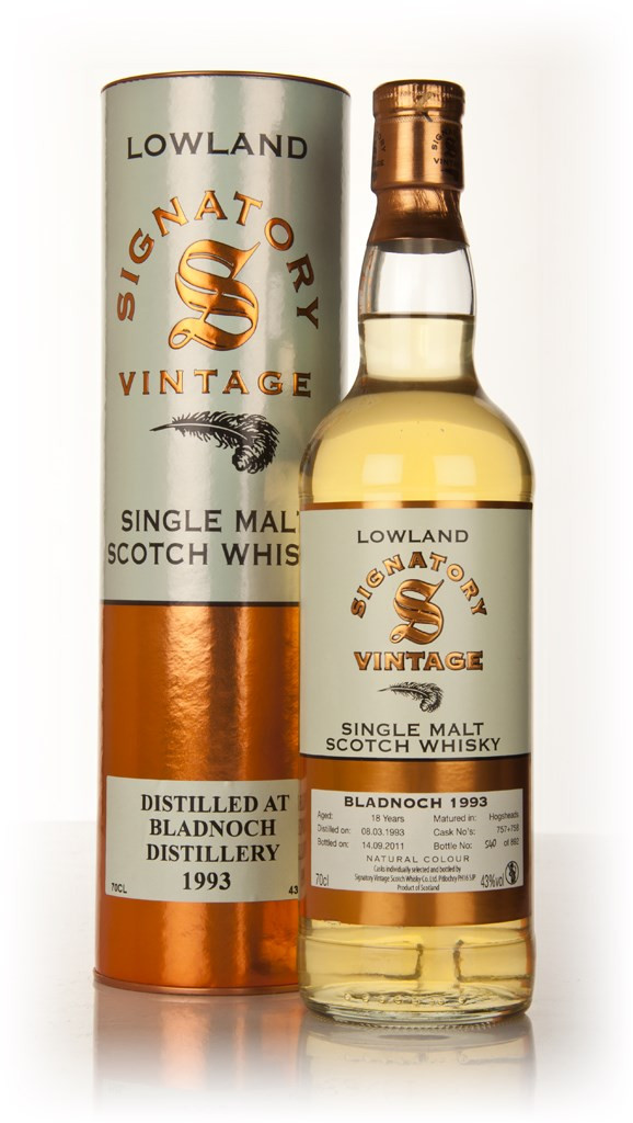 This was distilled on the 8th March 1993 at Bladnoch, it was then aged for 18 years in hogsheads 757 and 758 before bottling on the 14th September 2011 by Signatory. A release of 892 bottles.