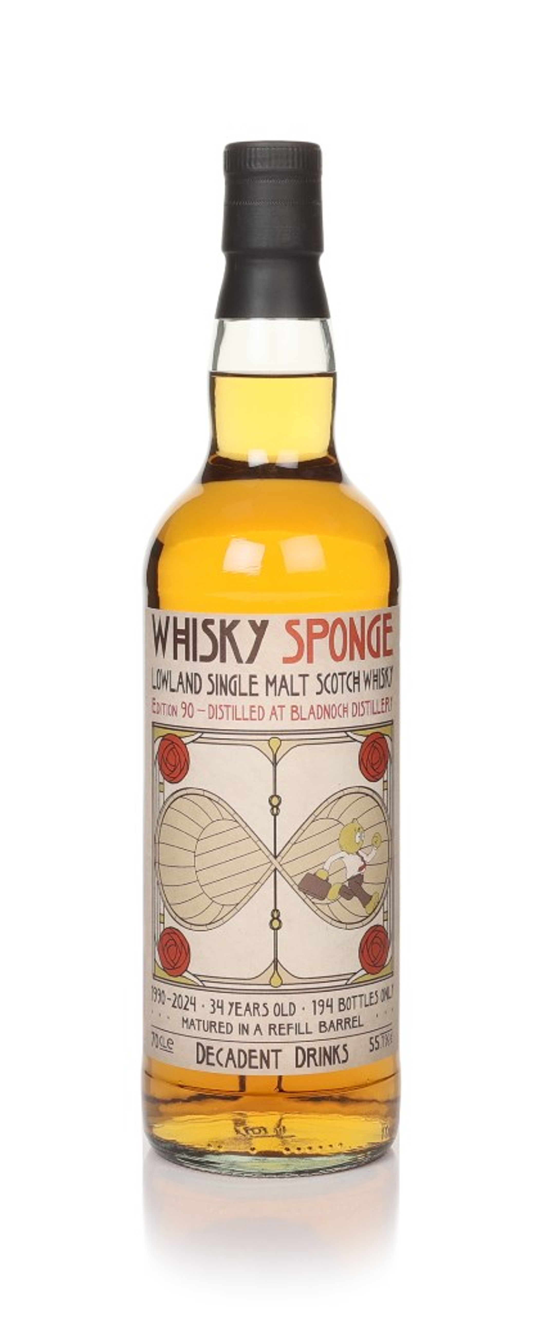 Whisky Sponge Edition No.90 is a 1990 vintage Bladnoch, aged in a refill barrel for 33 years and bottled at a cask strength of 55.4% ABV. Only 50 of these beautiful hand-blown Cognac glass bottles were filled. Decadent Drinks describes this single malt as being "Immensely concentrated, syrupy in texture and busting at the seams with honey and many shades of fruit. Typical Bladnoch, but also at the point where it is beginning to enter an altogether different realm!"