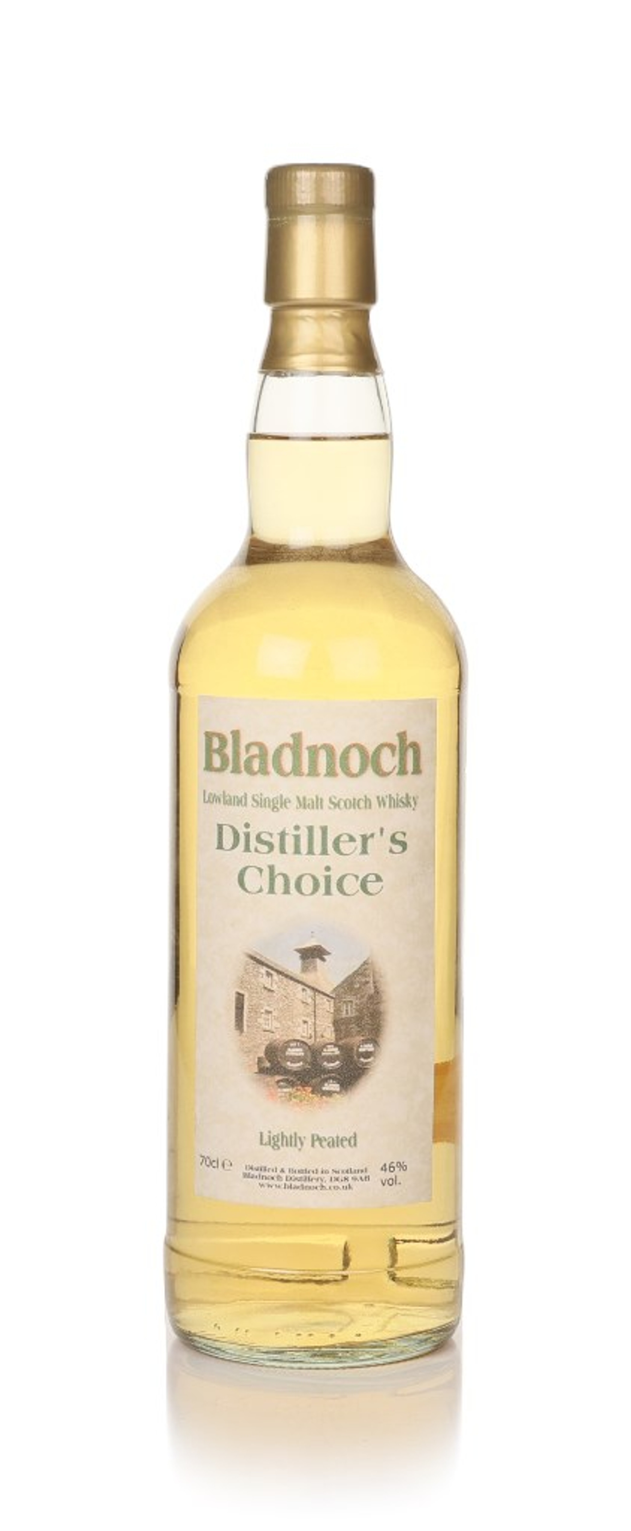 Single malt here from Bladnoch. This Lowland Scotch whisky is lightly peated and part of its Distiller's Choice bottling.