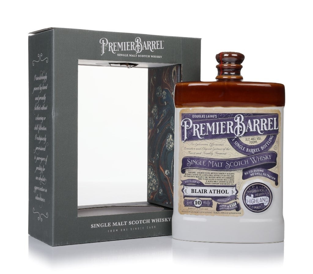 Single malt from Blair Athol, matured in a single cask for a decade before being filled into a fabulously handsome decanter by independent bottler Douglas Laing for its Premier Barrel series. A release of 277 bottles.