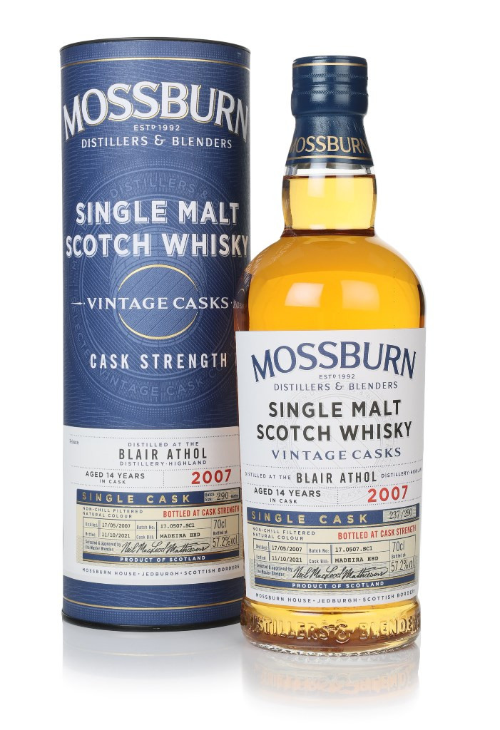 A beautiful single malt from Blair Athol, distilled in May 2007 and matured for 14 years in a single Maderia wine hogshead. In October 2021, the team at indie bottler Mossburn decided it would be a good fit for the Vintage Casks series, so they bottled the whisky up at cask strength, without colour or chill-filtration. A release of 290 bottles.