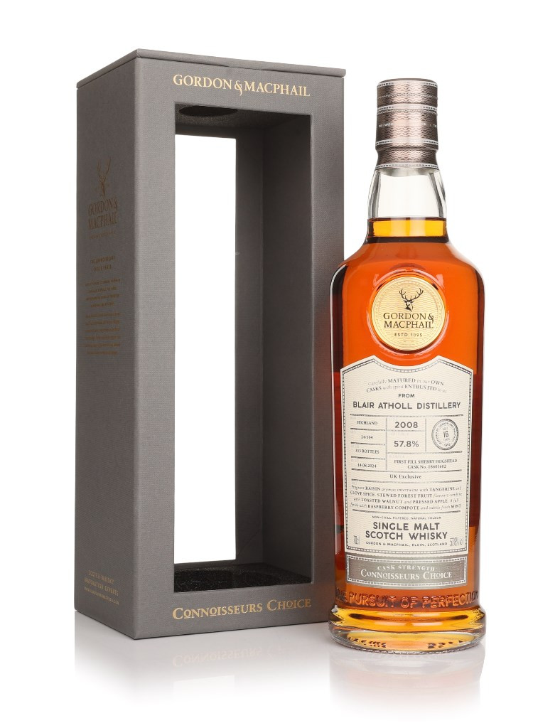 This single malt was distilled at Blair Athol in 2008, and spent the next 16 years maturing in a single first-fill sherry hogshead. The cask was cracked open by Gordon & MacPhail, independently releasing a total of 313 cask-strength bottles for the Connoisseurs Choice collection in 2024.