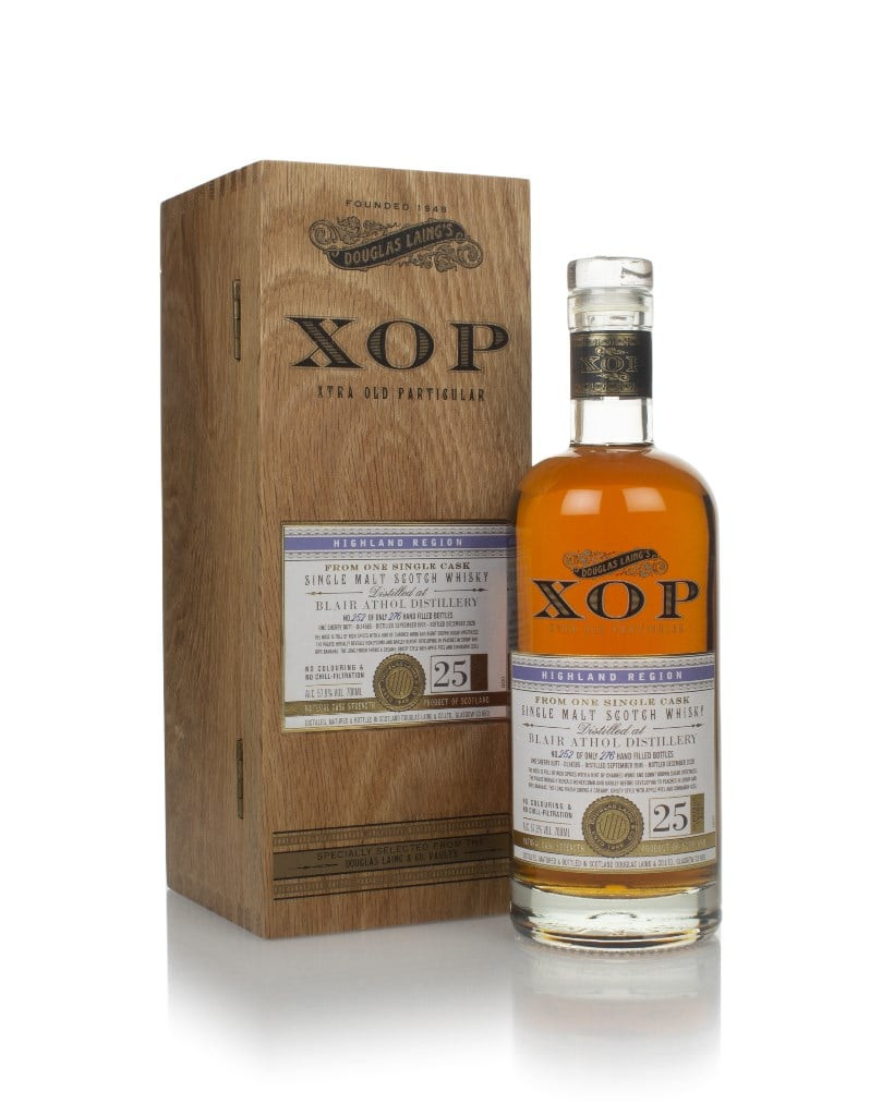 A wonderful addition to the Xtra Old Particular range by Douglas Laing – a stunning 25 year old single cask single malt from the Blair Athol Distillery! It was distilled back in September 1995 and rested in a sherry cask until bottling in December 2020. There was an outturn of 276 bottles drawn from this cask.
