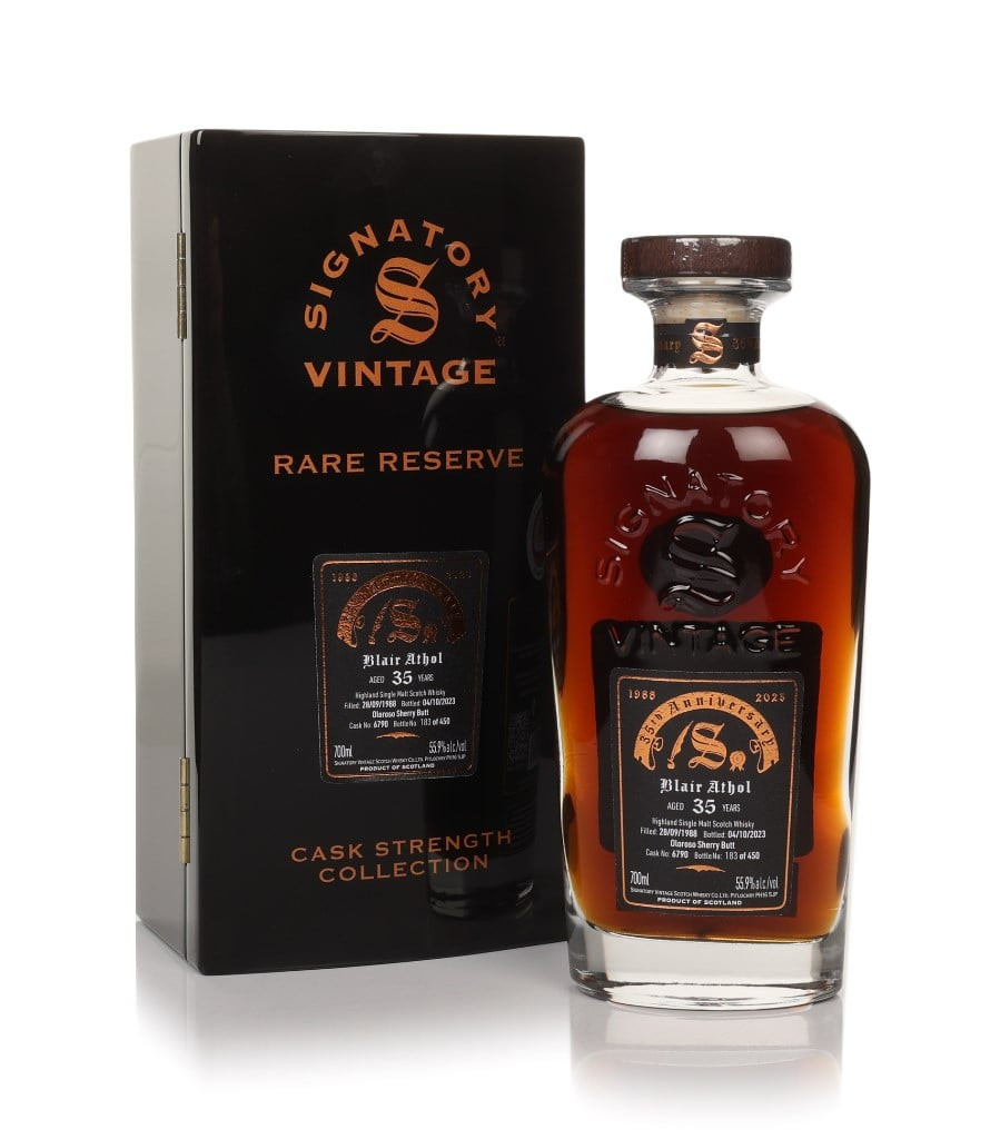 Something rather special here, it's a 35-year-old single malt from Blair Athol released by independent bottler Signatory to celebrate its 35th anniversary! Distilled in September 1988, the whisky matured in an oloroso sherry butt, yielding a total of 450 bottles when it was opened in October 2023 to join Signatory's Cask Strength Collection Rare Reserve.