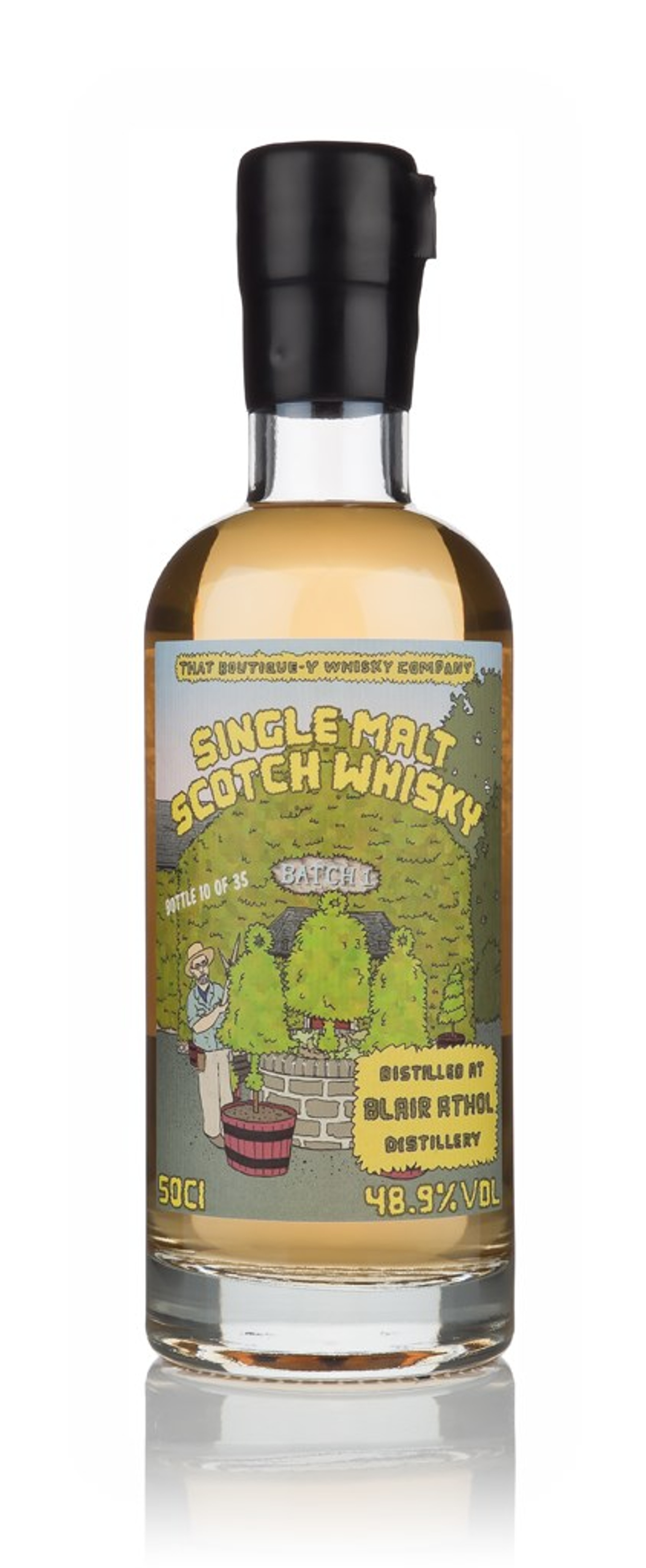 Ding-dong! It's a bottling of Blair Athol single malt Scotch whisky from That Boutique-y Whisky Company! Famous as the home of Bell's blend, of which the single malt is an integral part, the label sees a chap with a beard and glasses trimming the distillery's famous flora into some appropriate shapes. No, not otters - bells!