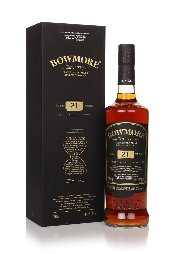 Magnificently well-aged, sherry finished single malt from Islay's Bowmore distillery. Originally released as a Travel Retail exclusive, this 21-year-old expression was treated to a finish in Pedro Ximénez casks resulting in an array of honeyed fruit, cocoa, and toasted nuts to compliment the meaty, coastal smoke at its core.