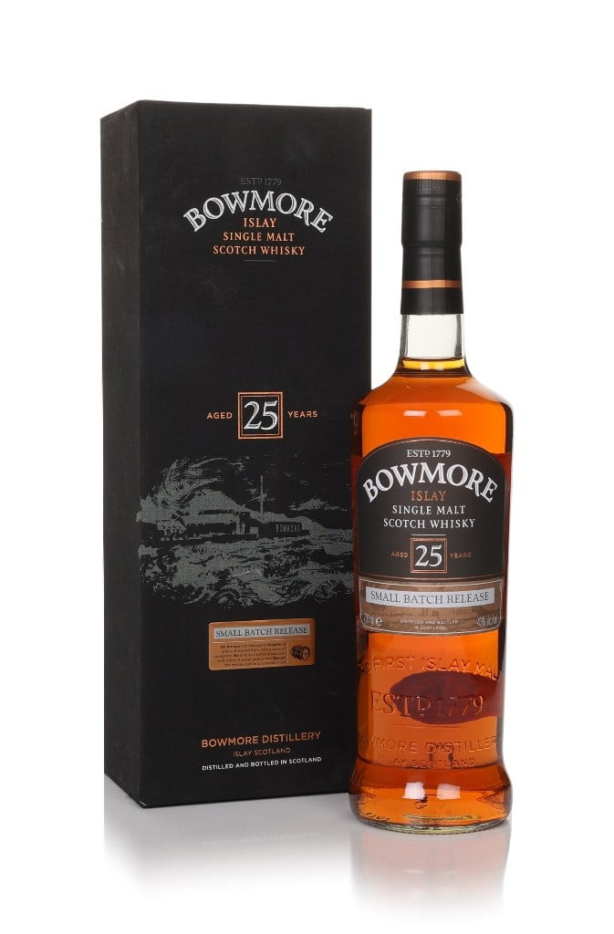 From Islay distillery Bowmore, this is a small batch release of its beautiful 25-year-old single malt whisky.