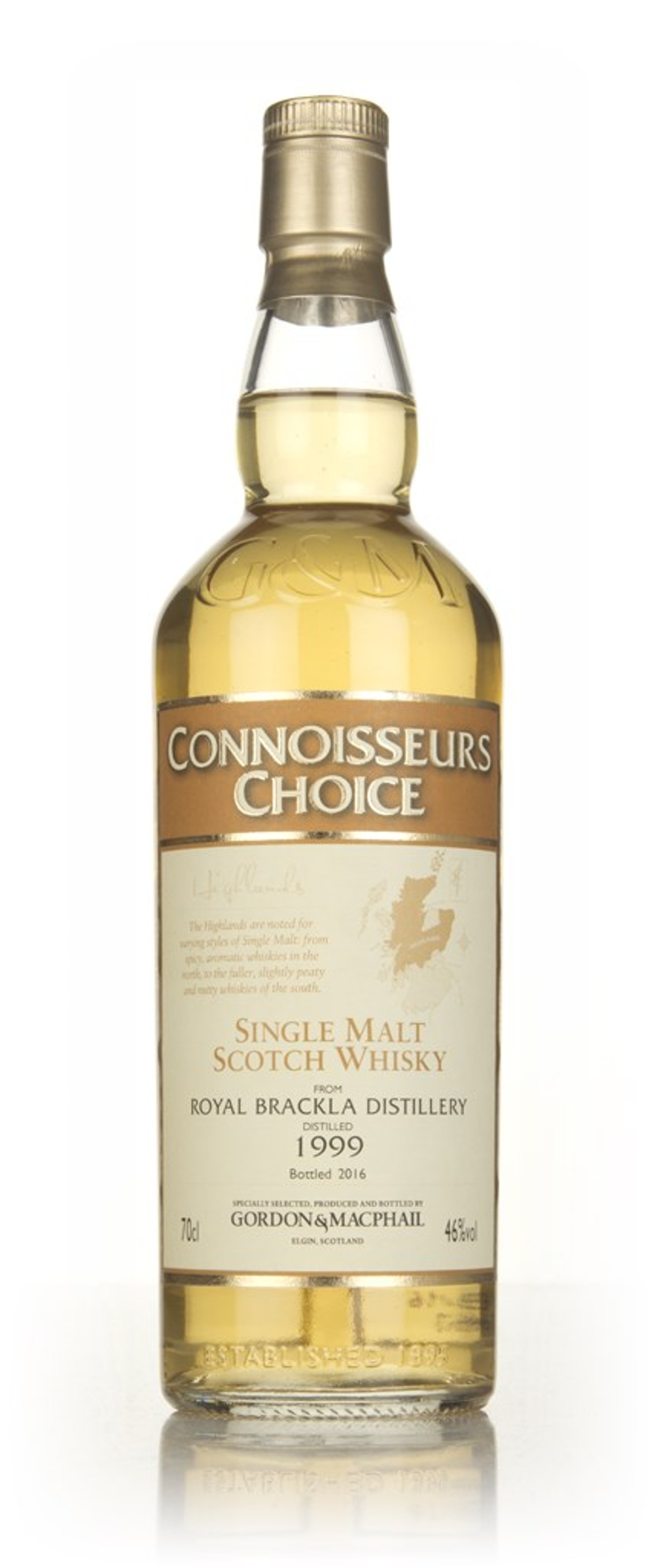 From one of the small handful of Scotch whisky distilleries with a Royal Warrant - Royal Brackla - comes a 1999 vintage single malt, independently bottled by Gordon & MacPhail in 2016 for the Connoisseurs Choice range.