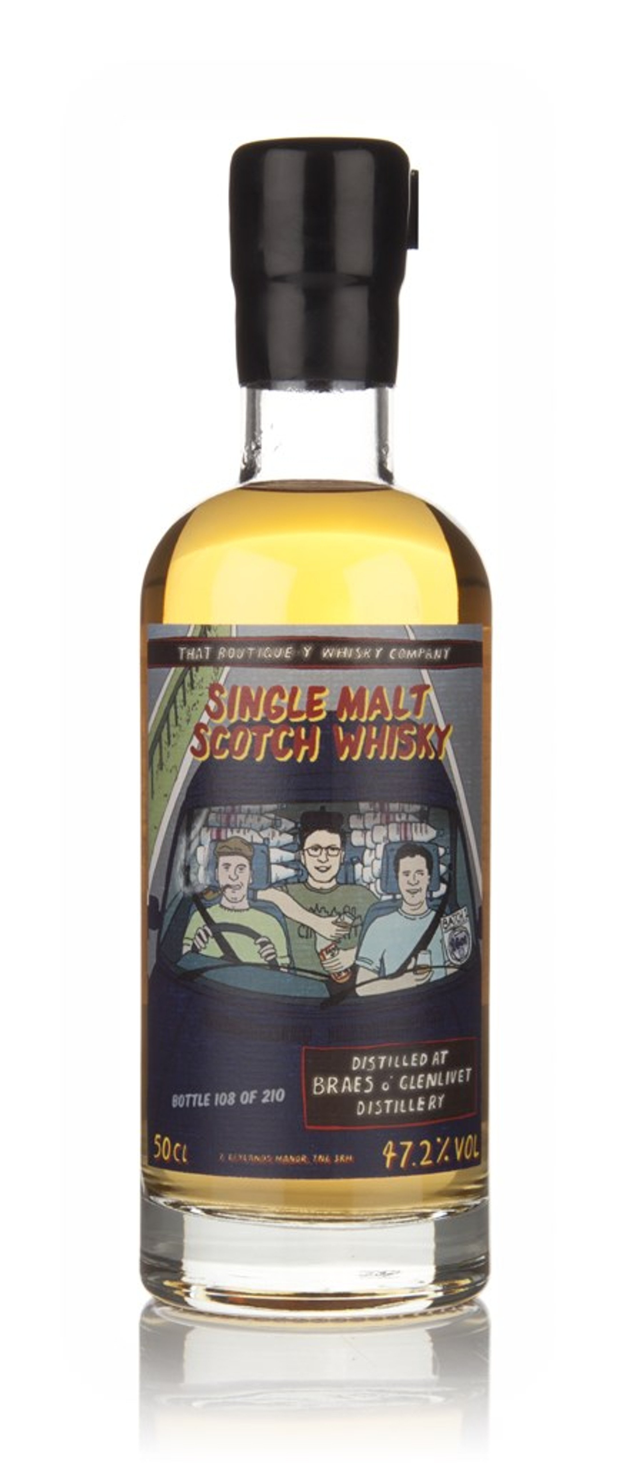 A marvellous Braes o' Glenlivet from That Boutique-y Whisky Company... Batch 1 features a graphic-novel-style illustration of Master of Malt's triumvirate: Ben, Tom and Justin, driving up to visit Scotland's many whisky distilleries in a car laden with Evian (Justin's very lifeblood). The inspiration for the label was the fact that it was Braes o' Glenlivet that drew the trio into the wonderful world of whisky in the first place.