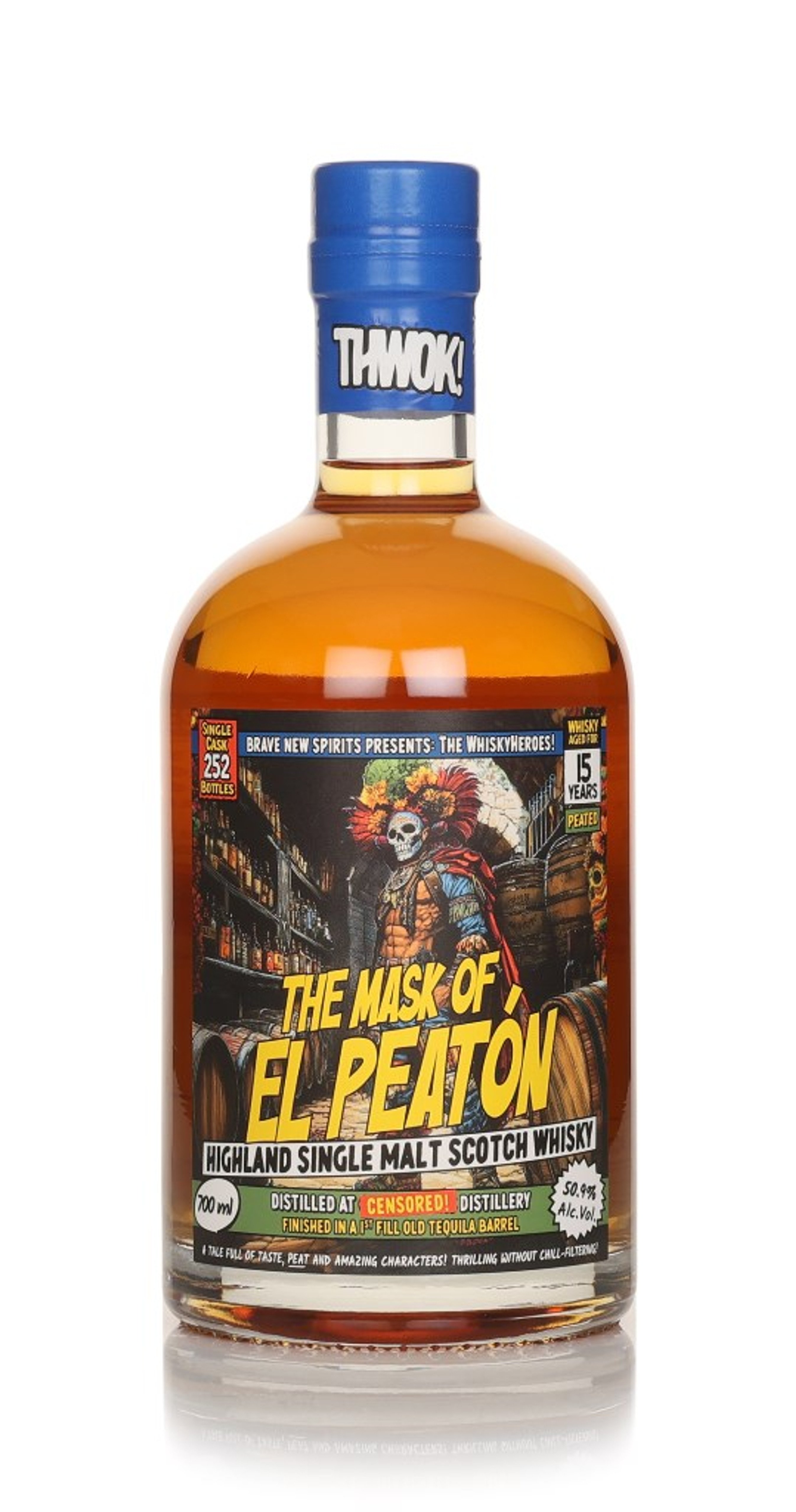 An intriguing addition to the Whiskyheroes series from indie bottler Brave New Spirits – it's a Tequila barrel finished Highland single malt! Hailing from an undisclosed Highland distillery, the peated whisky spent 15 years maturing, finishing in an old first-fill Tequila barrel that yielded an outturn of 252 bottles.