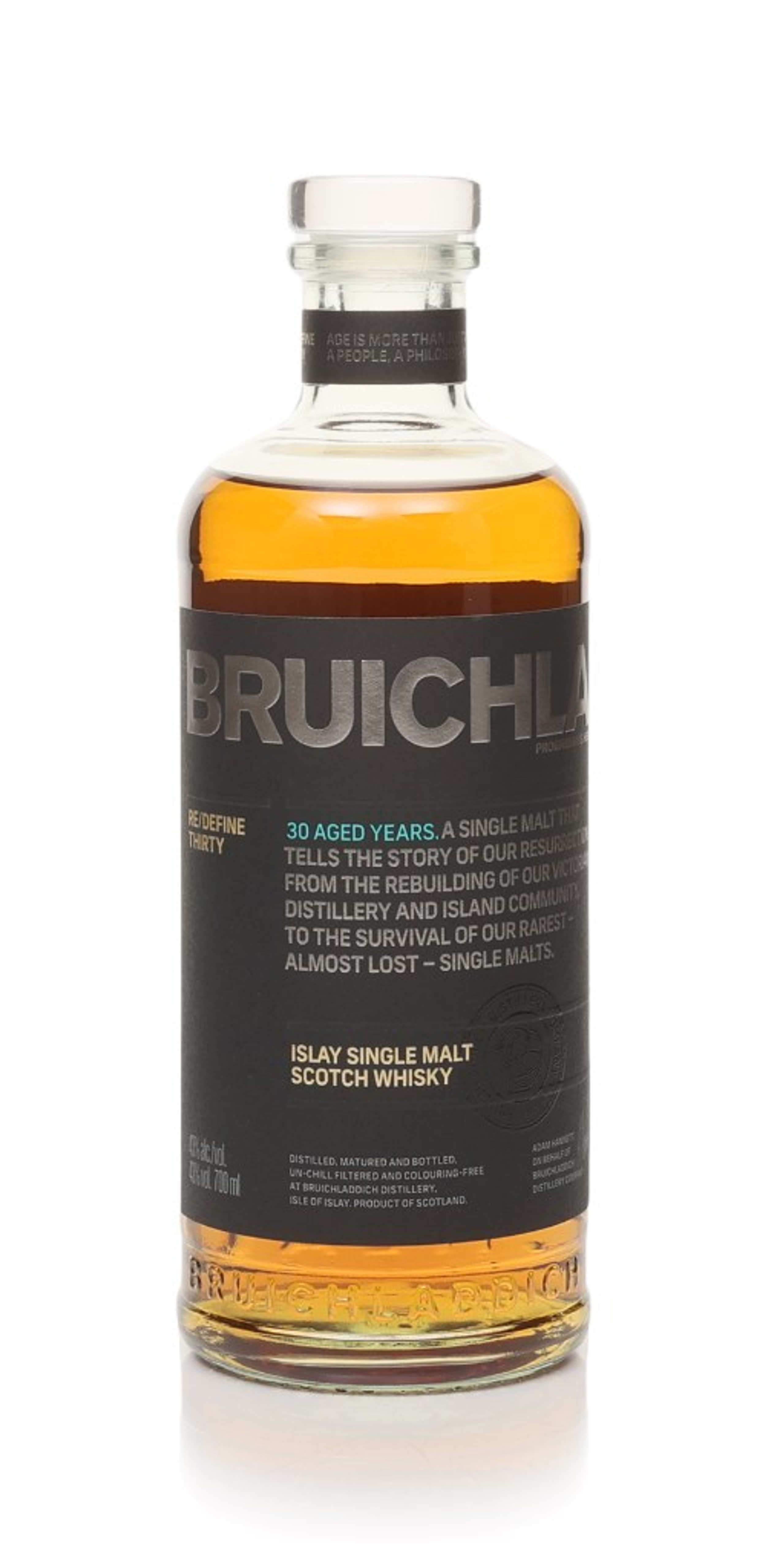 The Bruichladdich distillery tells the tale of its resurrection with this remarkable 30-year-old single malt. The Islay-based distillery was devastatingly mothballed in 1994, lying silent until it was able to reopen in 2001. Whisky stocks remained in the distillery's warehouses during its closure, with just two members of staff remaining to safeguard their lonely maturation. This single malt celebrates the distillery's legacy, combining whisky drawn from those surviving casks, distilled before Bruichladdich's renaissance. Matured entirely in bourbon casks, 50% spent its full term in refill hogsheads with the other 50% re-casked from refills into freshies after 20 years. After vatting, the whisky married for a further three months in refill bourbon barrels before it was bottled up without added colour or chill filtration at 43.25 ABV.
