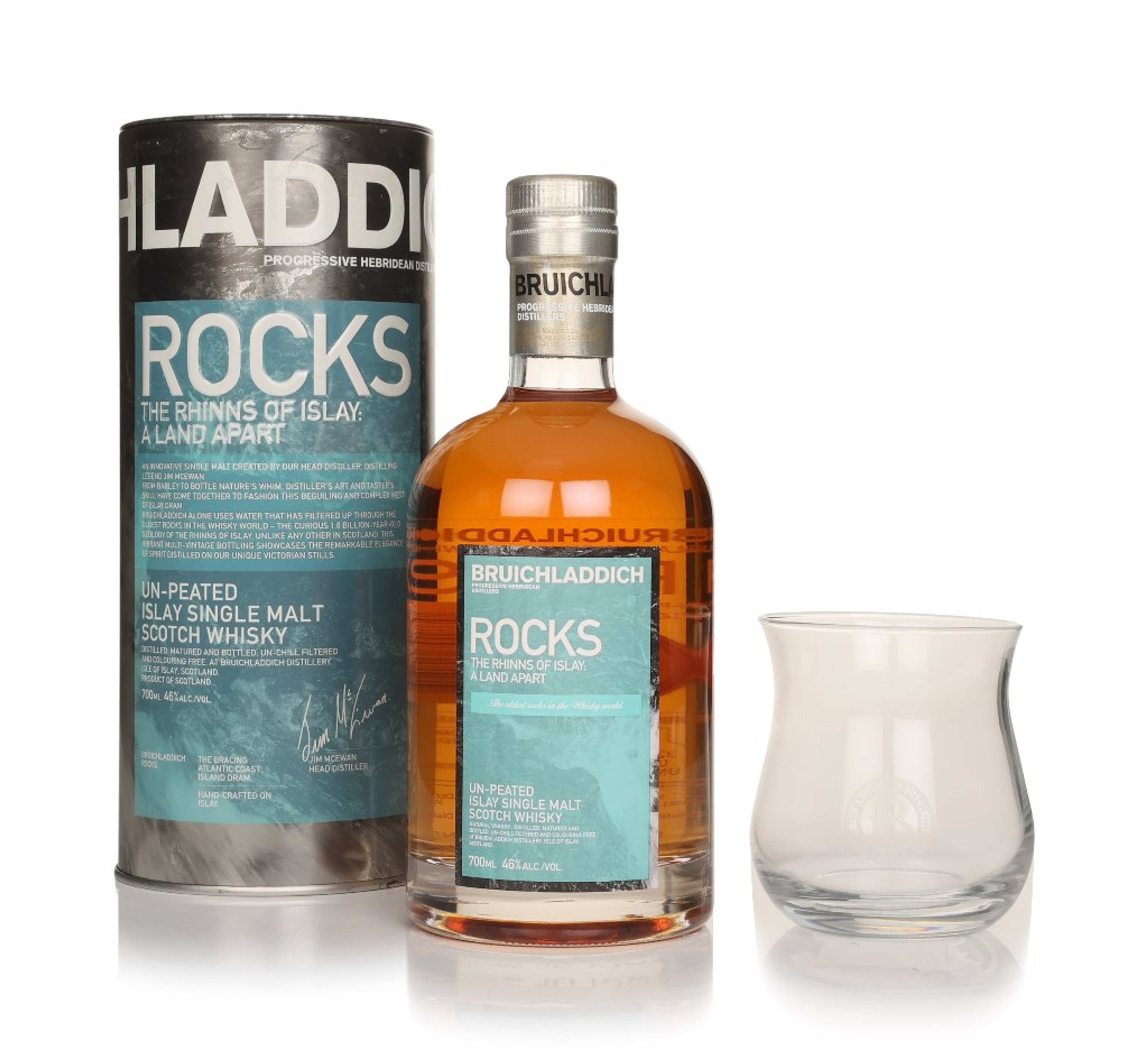 A multi-vintage Bruichladdich, matured first in bourbon casks and then in Grenache wine casks. Released in 2011, this expression is the third and final edition of the Bruichladdich Rocks bottling series, and comes with a smart branded glass and presentation tin.
