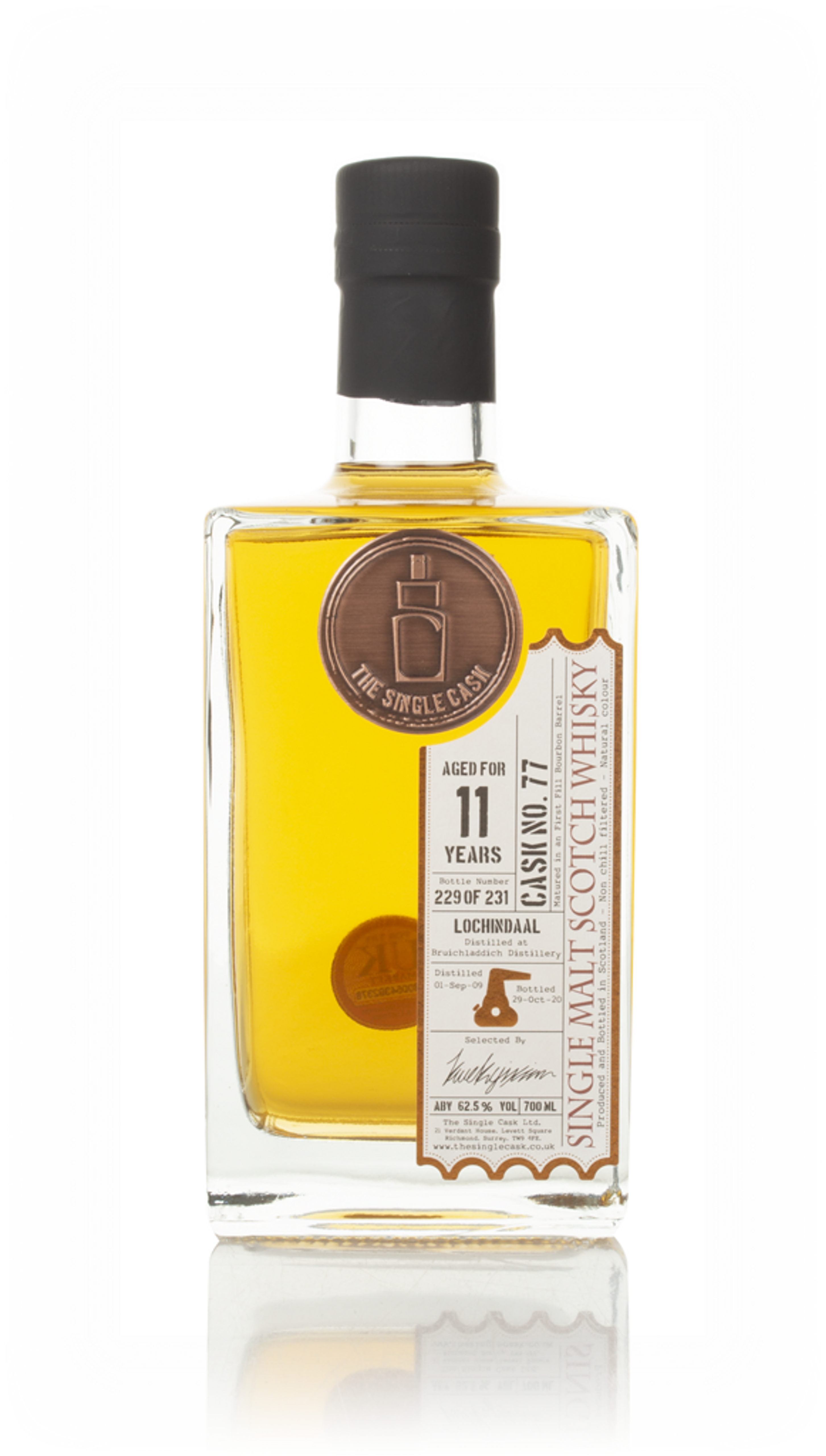 A smoky single malt from the Bruichladdich Distillery on Islay, released under one of its lesser-used names, Lochindaal. It was distilled in September 2009, and aged in a single cask for 11 years, until it was eventually bottled in October 2020. 231 bottles were released by The Single Cask.