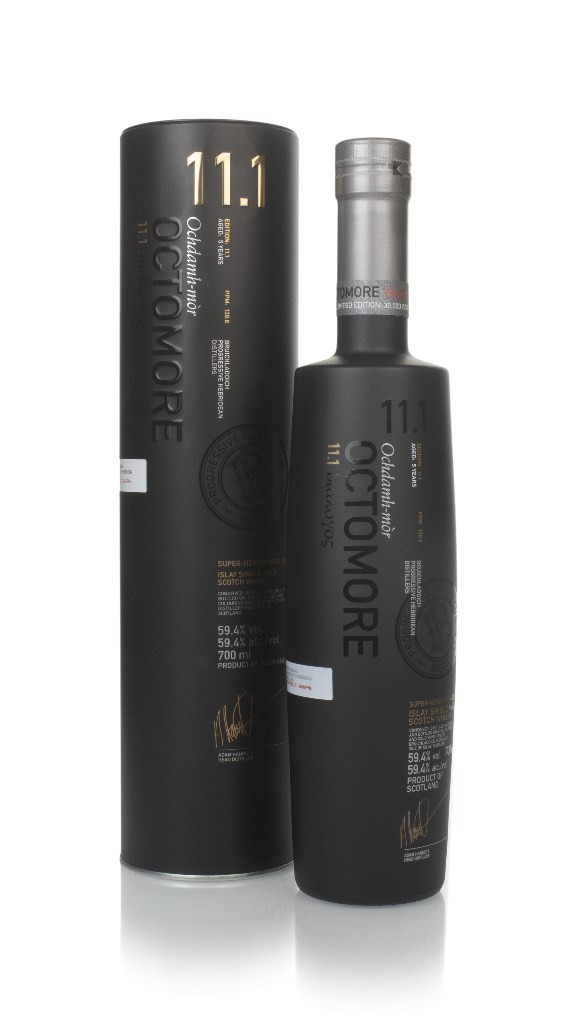 Octomore 11.1 from Islay's Bruichladdich Distillery one again shows off heavily-peated single malt, but does so with brilliant poise and restraint - it's super peaty, but it's not absurd and unpalatable. This particular edition is a 5 year old expression, distilled using Scottish Concerto and Propino barley, then matured in first-fill American whiskey casks from Jack Daniel's, Jim Beam and Heaven Hill.