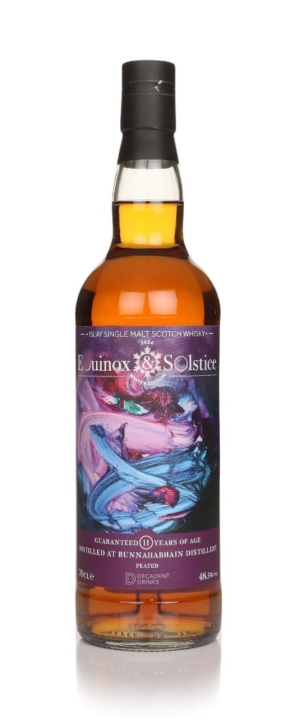 The Winter 2024 edition of Equinox & Solstice series is a 2013 vintage peated Bunnahabhain. Decadent Drinks combined a first-fill oloroso sherry hogshead of lightly peated Bunnahabhain Ardnahoe with a first-fill PX sherry hogshead of heavily peated Bunnahabhain Staoisha, leaving this mix to marry for a couple of months. It was then bottled at this series' trademark strength of 48.5% ABV.