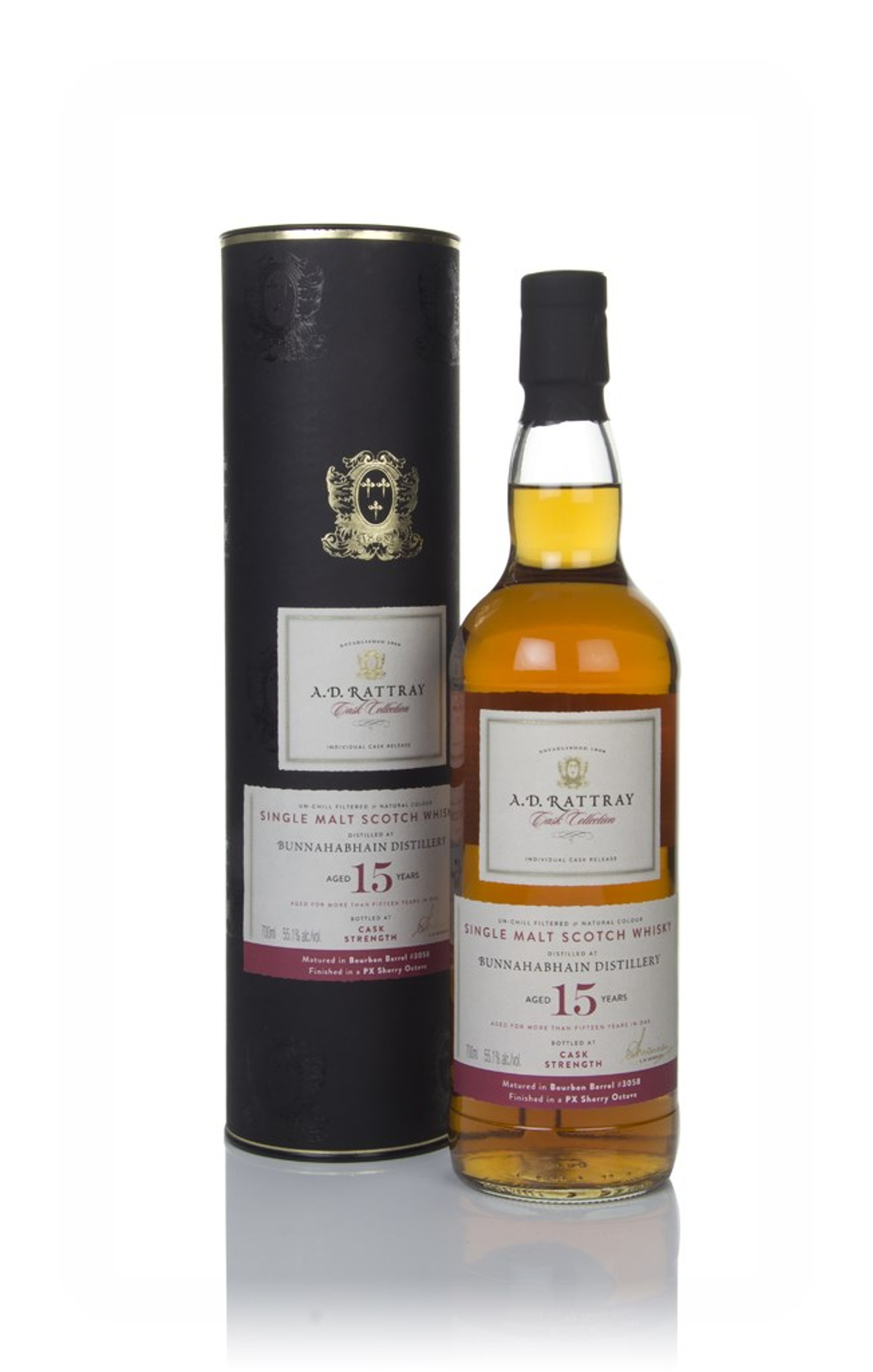 Distilled at Bunnahabhain, this single malt was independently bottled by A.D. Rattray for The Octave Project. The Islay whisky was first aged in a bourbon hogshead before it spent a five month finishing period in an Octave cask which previously held Pedro Ximénez sherry. At 15 years old, the liquid was bottled at cask strength, weighing in at 55.1% ABV.