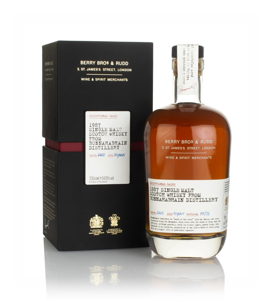 A brilliant indie Bunnahabhain, distilled on Islay back in 1987. The single malt was filled into a single refill hogshead, where it spent just over three decades. Berry Bros. & Rudd emptied the cask when the whisky reached 31 years old, releasing just 72 bottles for its Exceptional Casks series at 54.8% ABV.