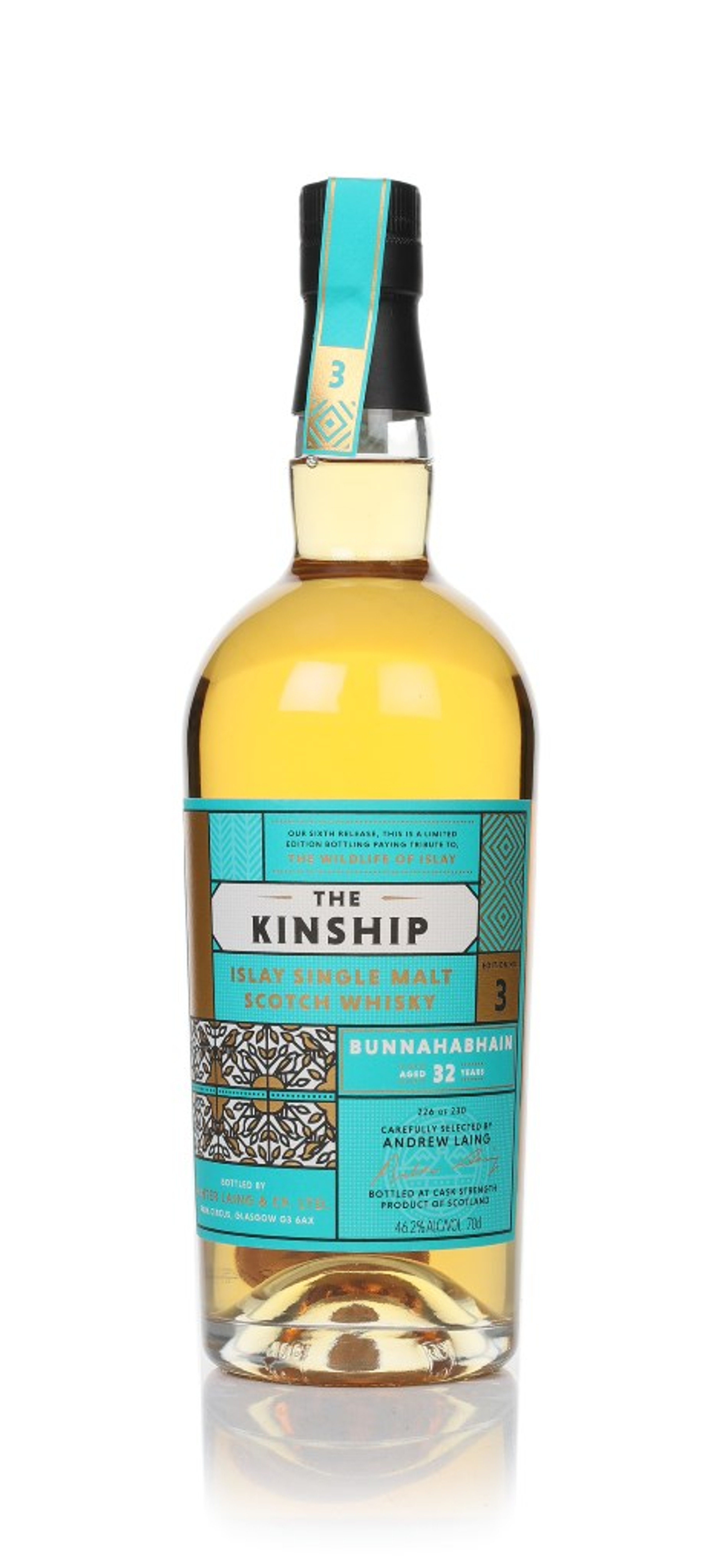 Cracking stuff from Islay's Bunnahabhain distillery. This single malt was aged for an impressive 32 years before bottling. Incidentally, 32 is also the number of teeth that adult humans have, for anyone interested. Independently released by Hunter Laing, it joins The Kinship series, with a total outturn of 230 bottles.