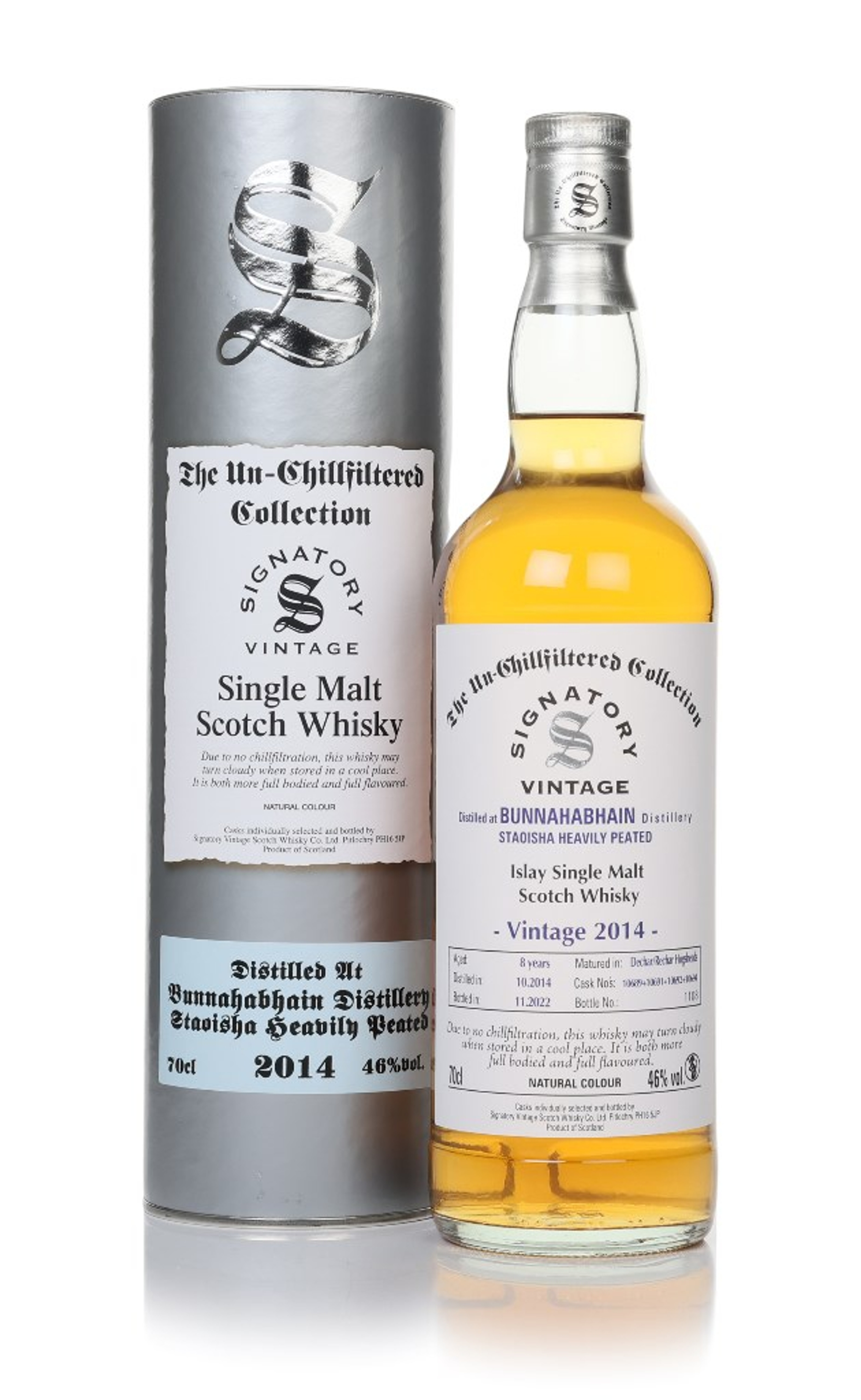 This heavily-peated Staoisha single malt from Bunnahabhain joins the Un-Chillfiltered Collection from indie bottler Signatory. Matured for eight years in a selection of de-charred and re-charred hogsheads between 2014 and 2022, it's an impressive offering from the Islay distillery.