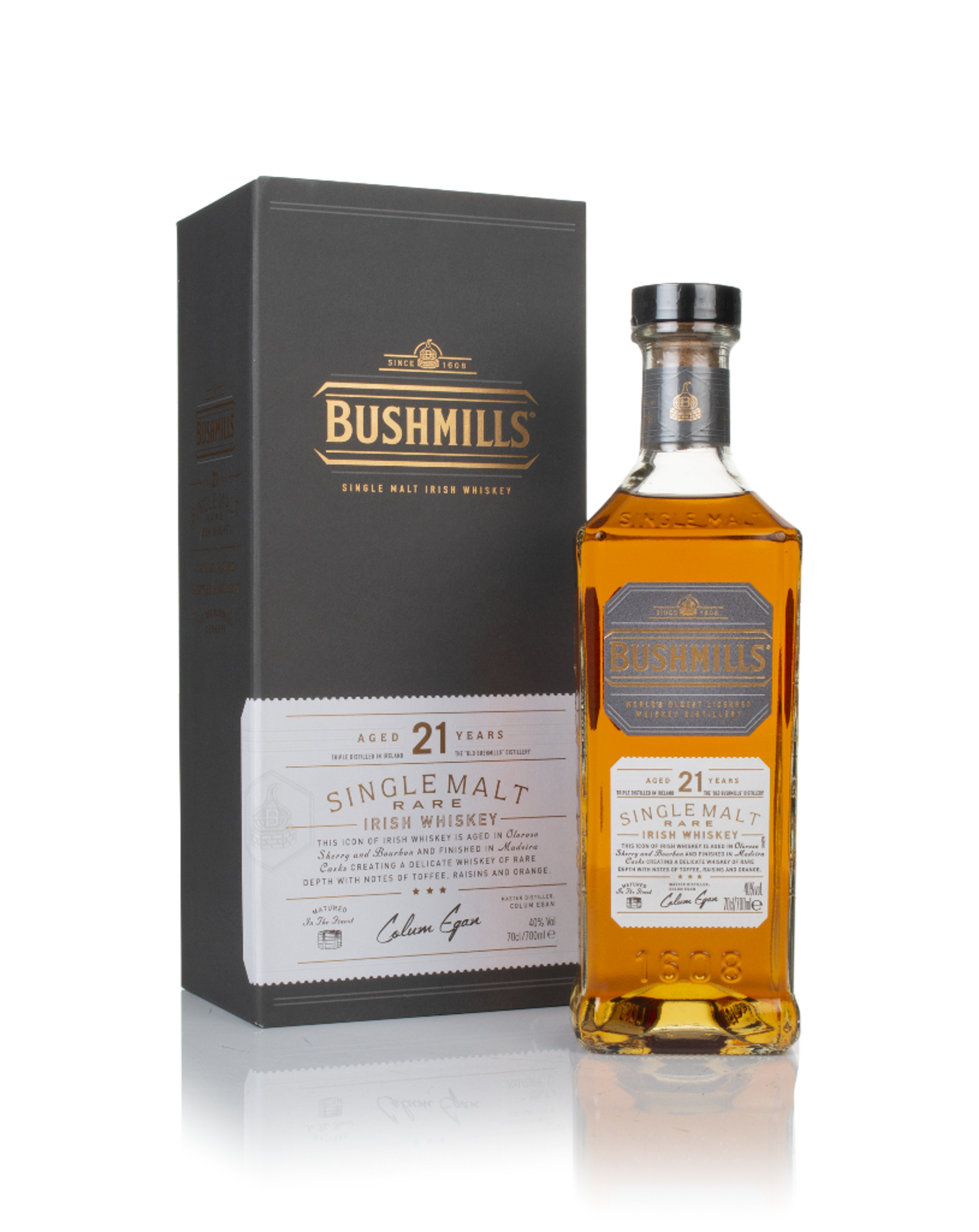 An exquisite Irish whiskey, Bushmill's 21 is matured in a mixture of Oloroso Sherry and Bourbon casks, before a two year marrying period spent in Madeira casks. Produced in limited numbers, each bottle is numbered.