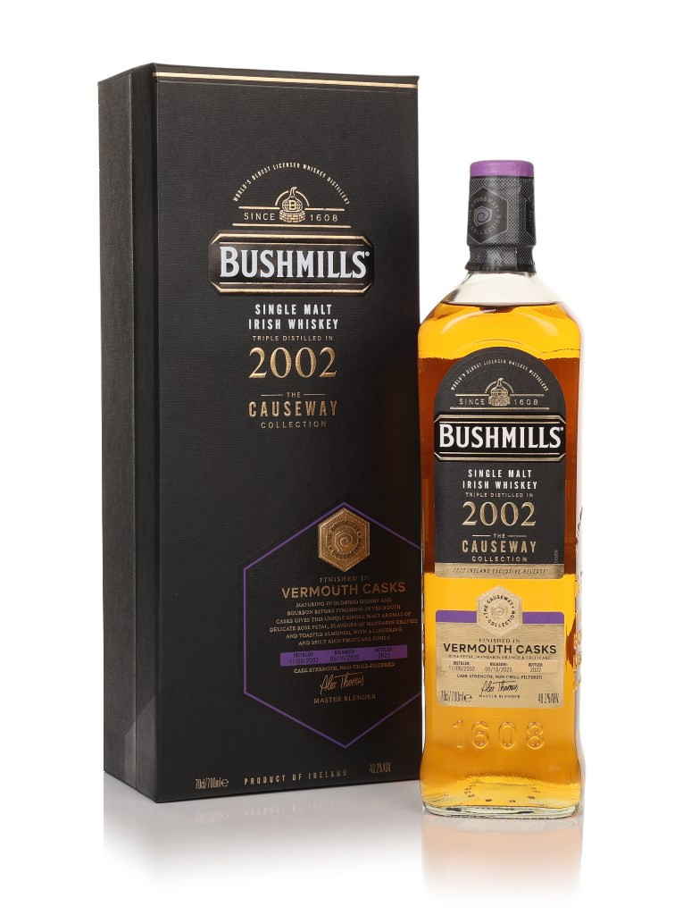 From the superb Causeway Collection comes a vintage 2002 Bushmills single malt Irish whiskey. It was aged in a combination of bourbon and sherry casks for over 18 years then, after its initial maturation, it was transferred to vermouth casks for a finishing period of over two years. Bushmills says this is the world’s first-ever vermouth cask-finished Irish single malt whiskey. So it's pretty special stuff.