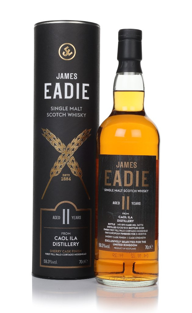 What do we have here? Single cask Caol Ila finished in a first-fill palo cortado hogshead? Hell yes. James Eadie bottled up this beauty that was distilled back on 15 February 2011 after it spent 11 years ageing, five months of which was the finish in the aforementioned sherry cask. It's presented at a cask strength 59.3% ABV.