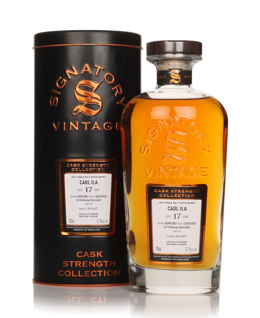 Distilled at Caol Ila in 2007, this single malt enjoyed the next 17 years slumbering in a first-fill oloroso sherry butt. The cask was cracked open by Signatory in 2025, releasing 677 cask strength bottles, without added colour or chill filtration for its independent Cask Strength Collection.