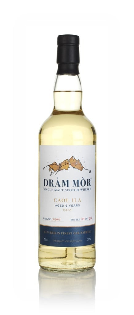 Single malt from the east coast of Islay here, independently bottled by Dràm Mòr. This is a 6 year old Caol Ila, bottled at a hefty 59% ABV and with an outturn of 312 bottles. Enjoyably smoky and clean stuff.