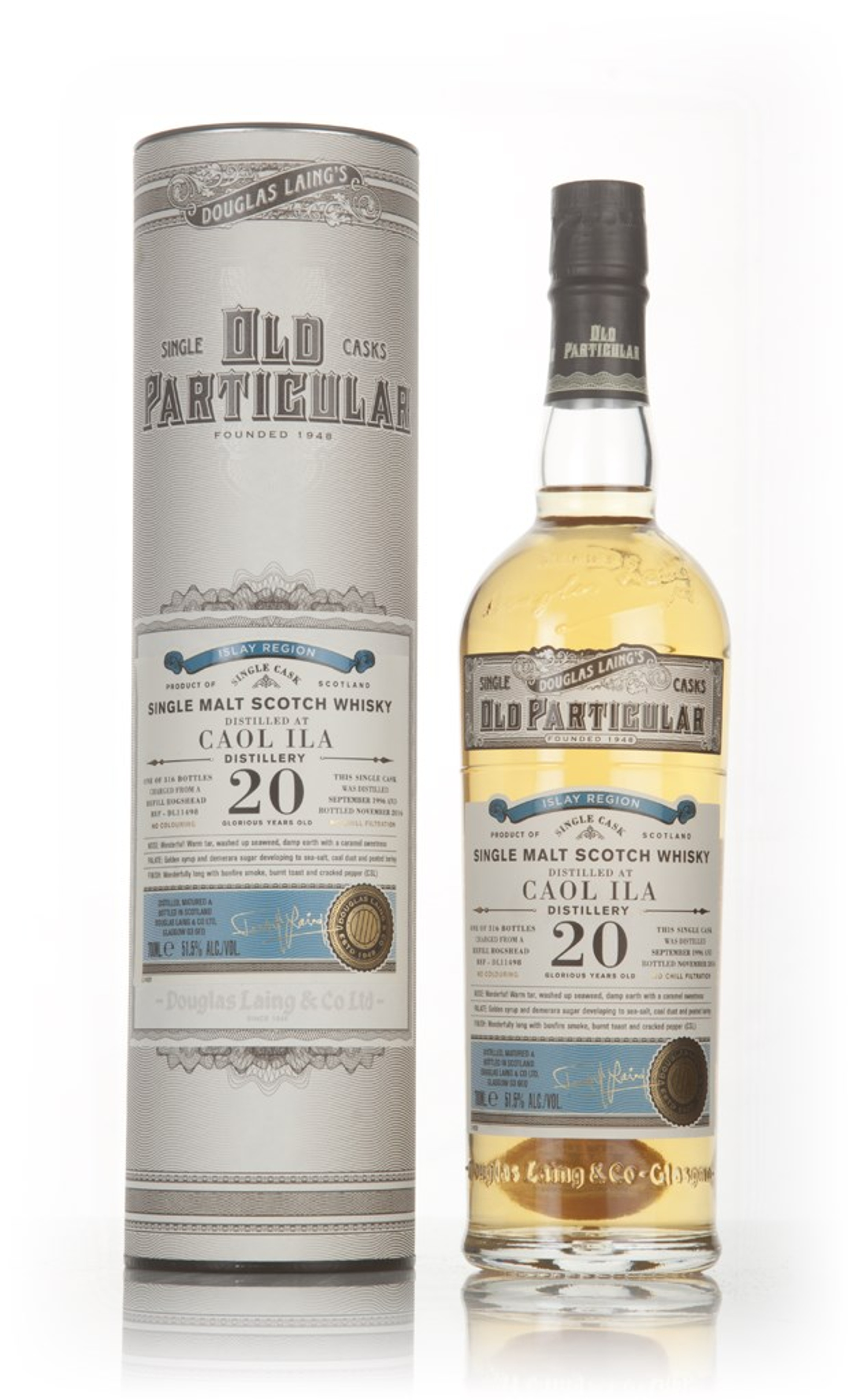 A 20 year old bottling of single malt Scotch whisky from the excellent Caol Ila distillery on the Isle of Islay. This was distilled in September 1996 and allowed to age in refill hogshead #11498 until November 2016, when it was bottled by Douglas Laing for the Old Particular range. 316 bottles were produced.