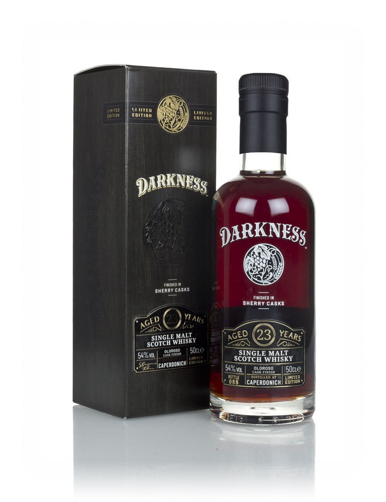 A particularly sublime sherried single malt from the Caperdonich Distillery, independently bottled for the Darkness range! It's a 23 year old expression from the closed distillery, which has enjoyed a finishing period in a specially-coopered Oloroso sherry octave cask, imparting a wealth of dark fruit and festive spice notes, as well as the dark ruby hue.