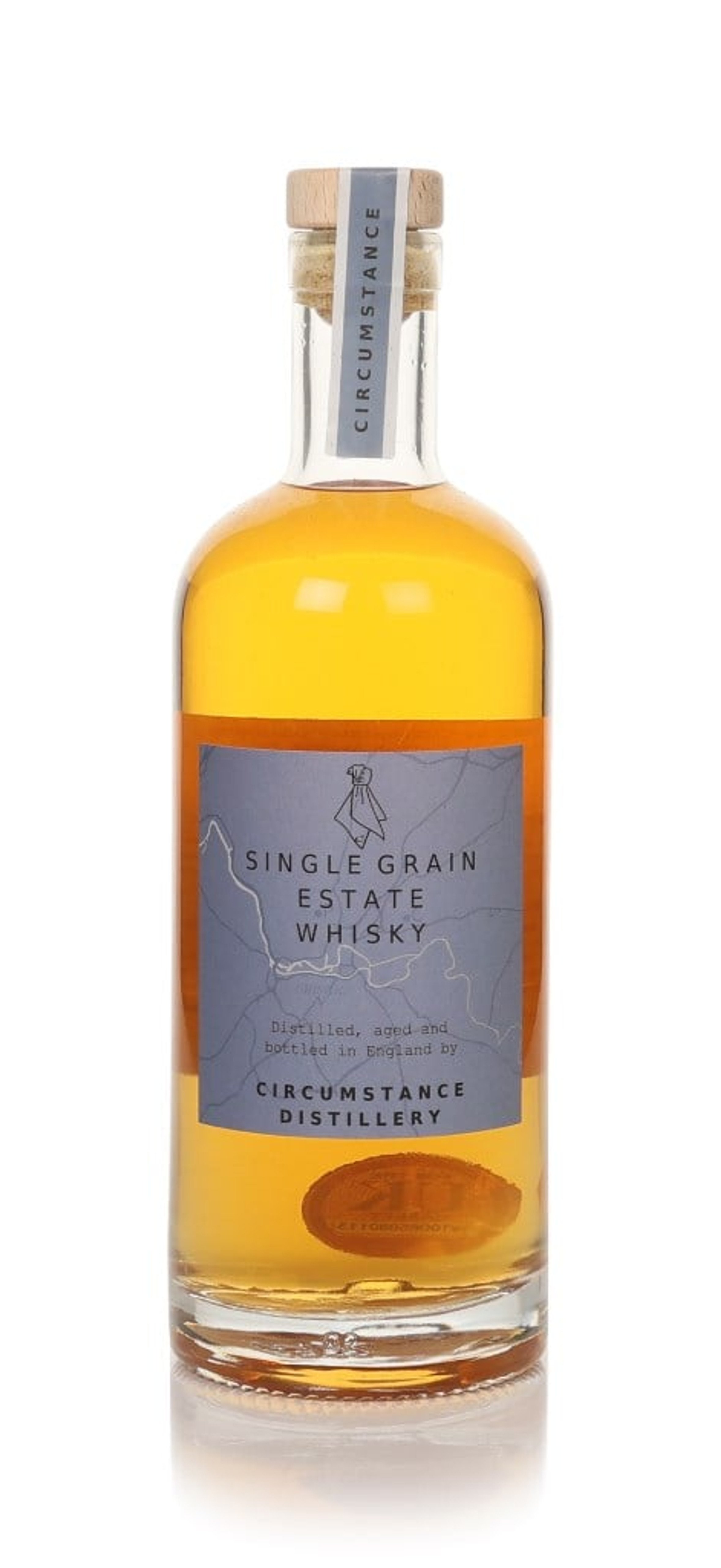 Circumstance Single Grain Estate Whisky is comprised of four different grains (malted barley, unmalted barley, malted rye, and malted wheat) which underwent a long fermentation with three brewing yeasts (saison, Bavarian, mead) and were then aged in a trio of casks (bourbon, new European oak, and oloroso conditioned). The English whisky was bottled at 45% ABV. It's the first core release from the Bristol-based distillery.