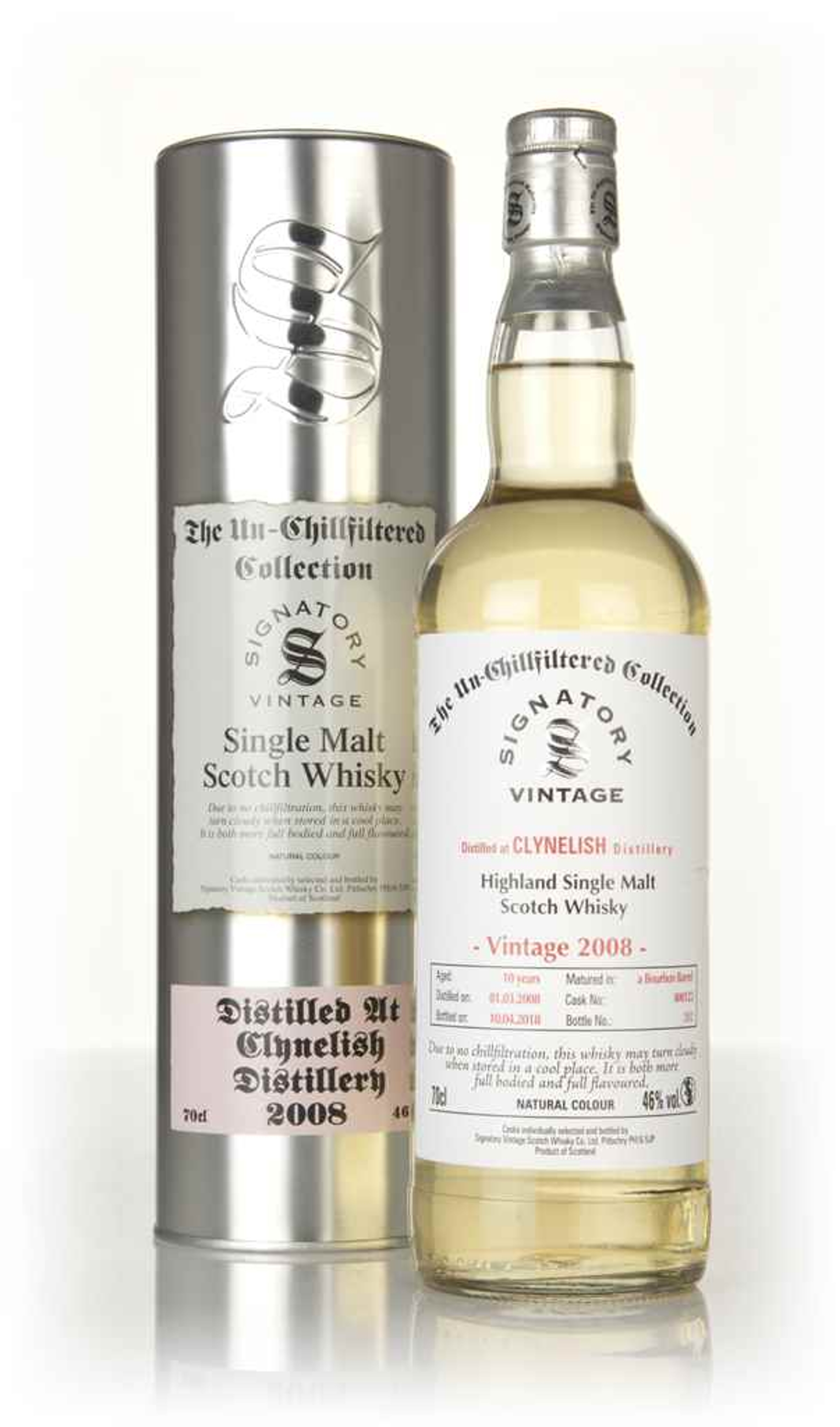 Single cask 10 year old Clynelish, independently bottled by Signatory for the Un-Chillfiltered Collection. This was distilled back on 1st March 2008 and set aside to mature in a hogshead cask until 10 April 2018, when it was bottled without any chill-filtration. Which is good as the name wouldn't make any sense at all if it was chill-filtered.