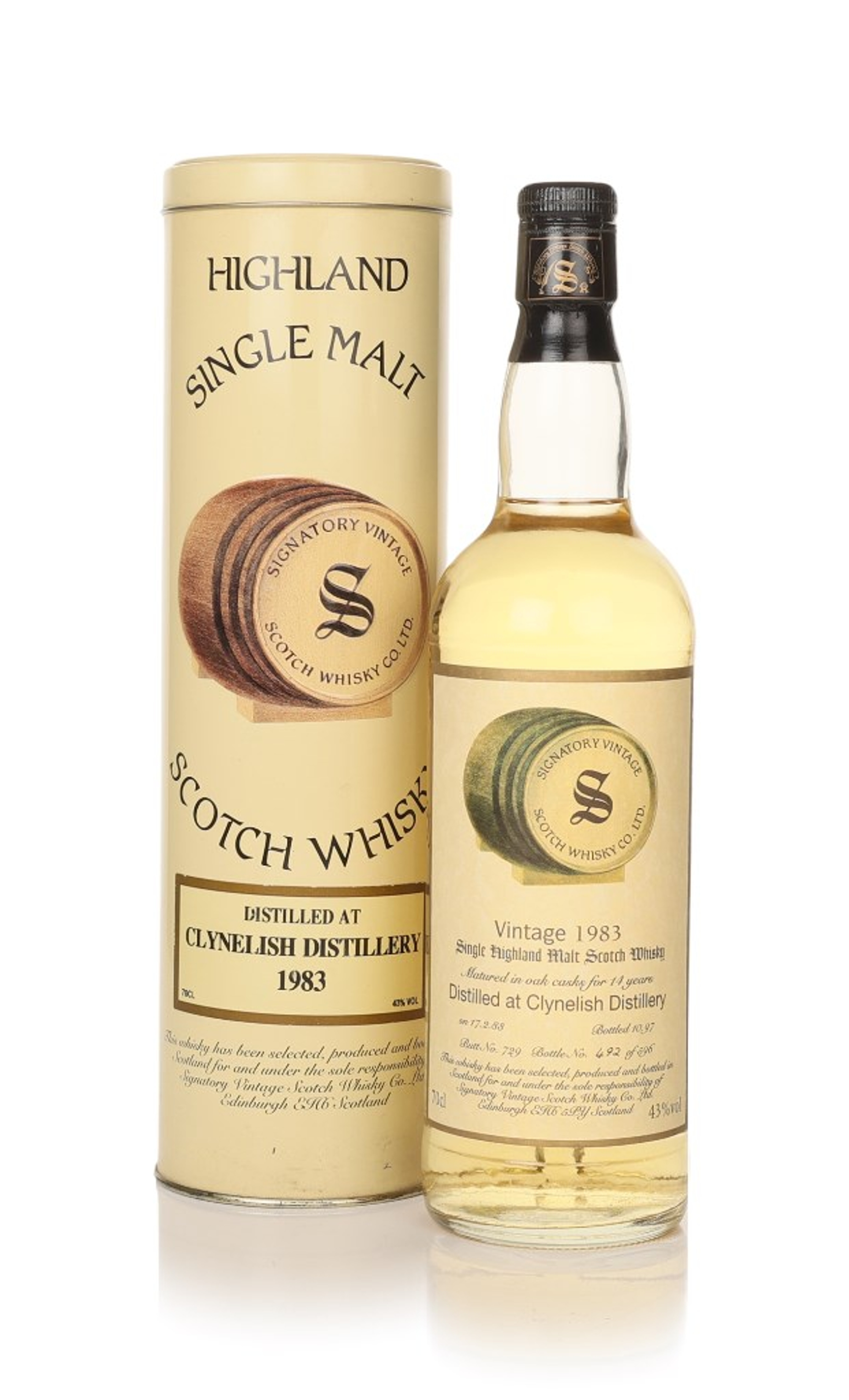 Distilled in February 1983 and matured for 14 years, this single malt from Clynelish was independently bottled by Signatory in October 1997. A release of 596 bottles.