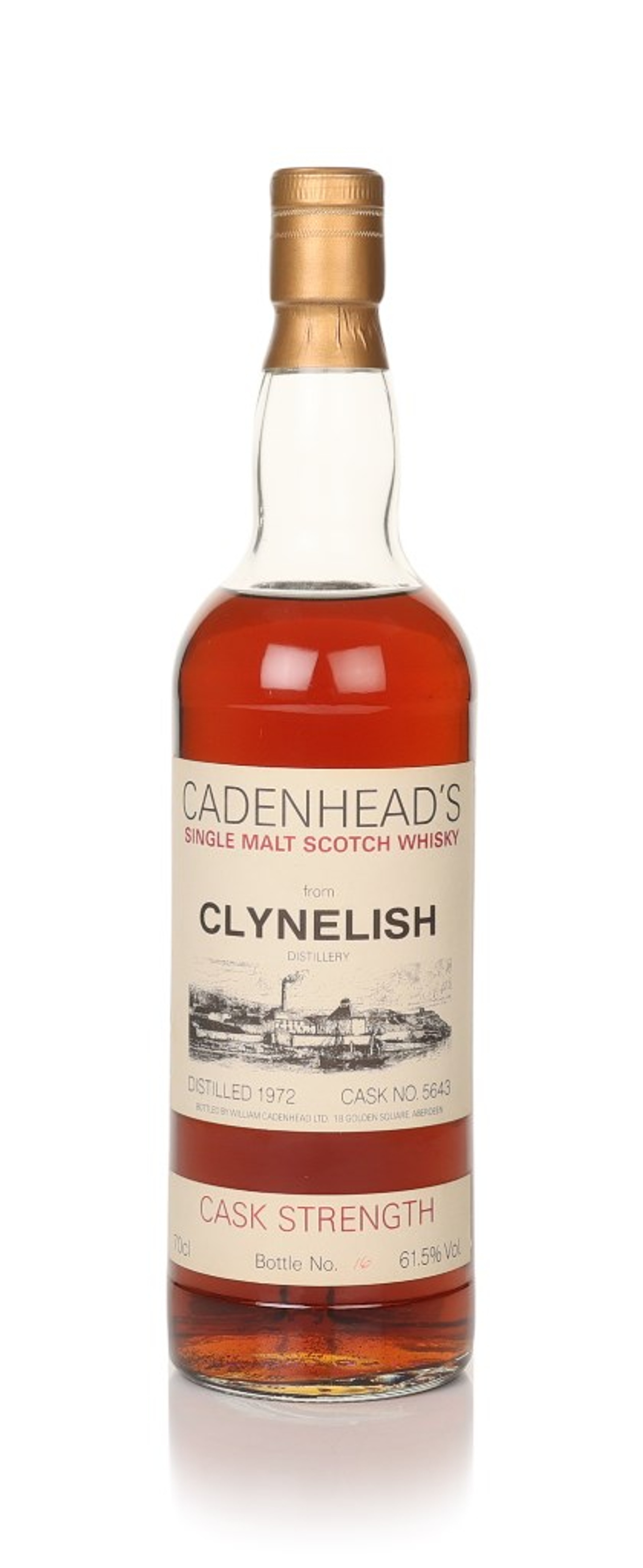 A Highland single malt from Clynelish distillery, made back in 1972 and filled from Sherry cask number 5643 at a natural strength 61.5% ABV. It was bottled by William Cadenhead Ltd in the 1990s for its white-label Cask Strength series.
