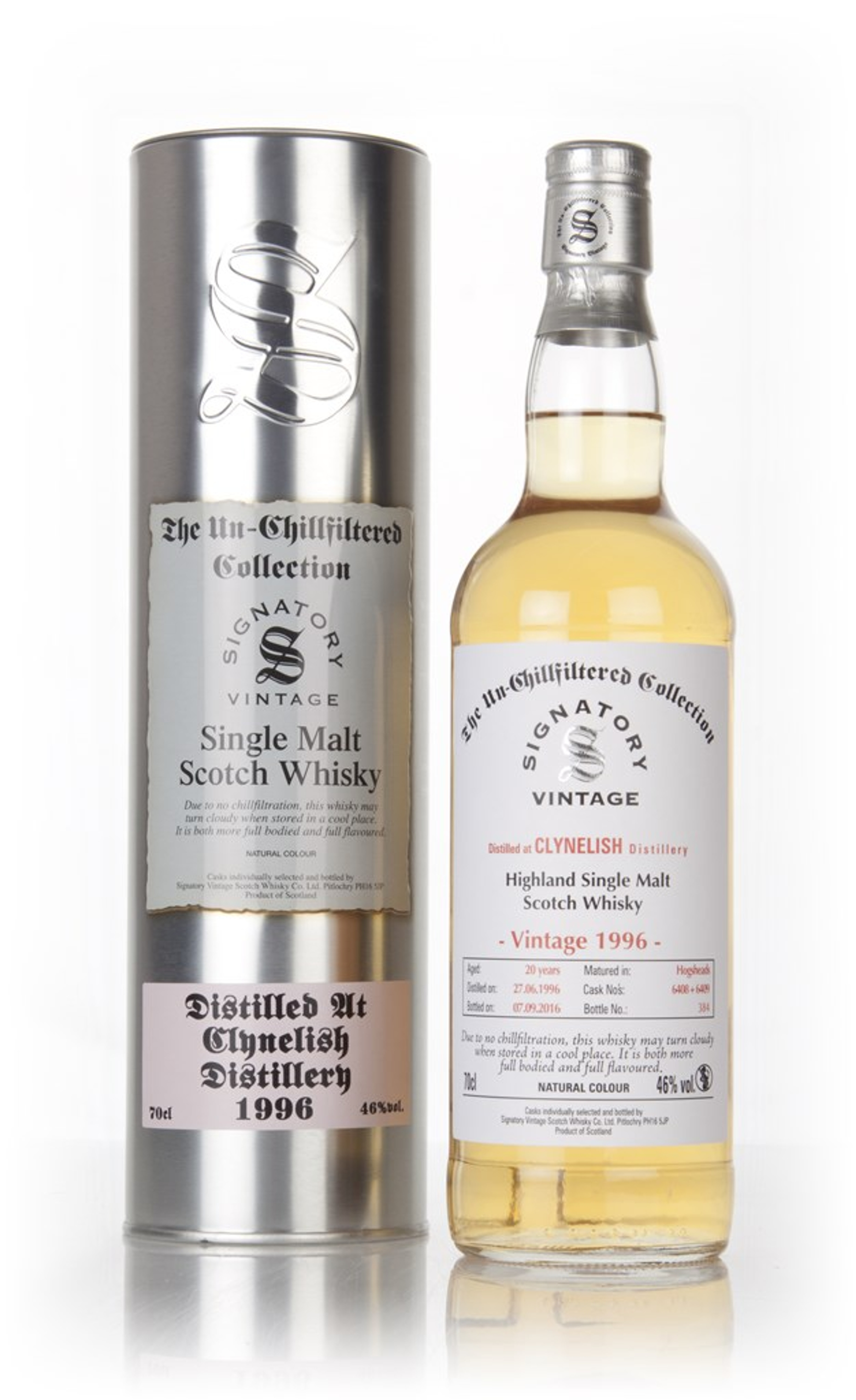 A 20 year old Clynelish, independently bottled by Signatory as part of their Un-Chillfiltered Collection. It was distilled in June 1996, matured in two hogshead casks and bottled in September 2016 without even a thought to chill-filtering it.