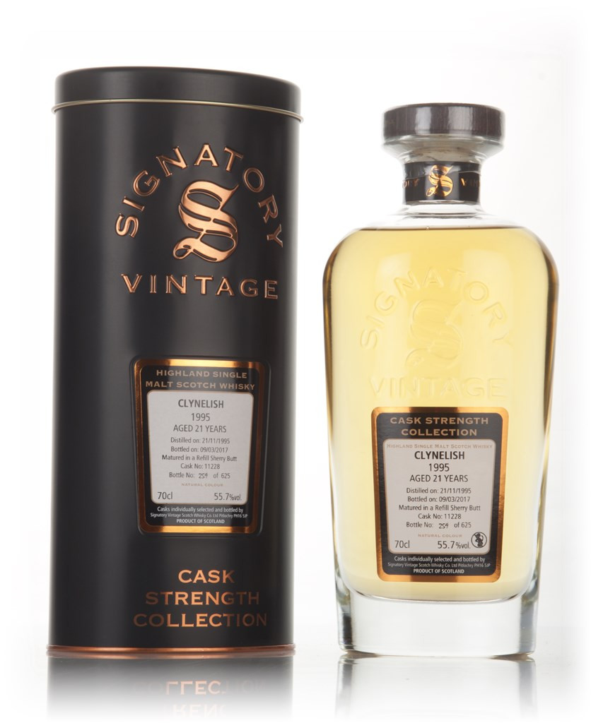 A single cask bottling of 21 year old Clynelish, distilled in November 1995 and bottled in March 2017 by Signatory for the Cask Strength Collection. 625 bottles were drawn from the refill Sherry butt in which this whisky slumbered.