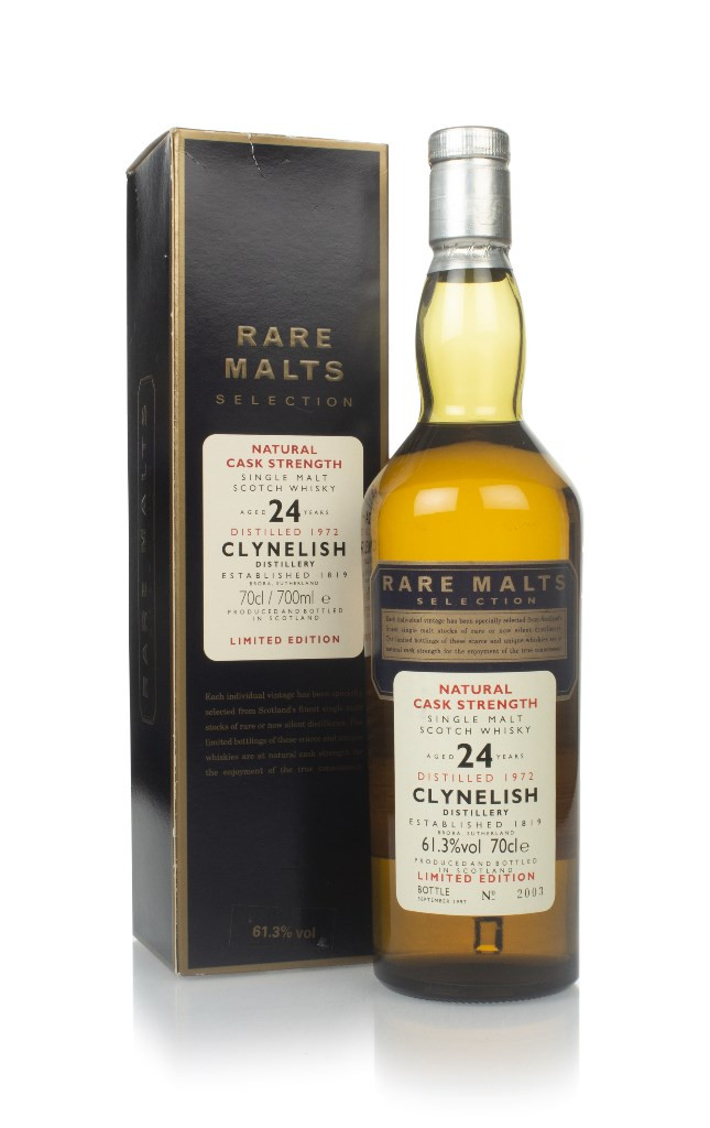 From Diageo's Rare Malts Selection, this 24-year-old single malt from Clynelish was distilled in 1972 and bottled up at a bold cask strength of 61.3% ABV. A rare find for collectors right here.
