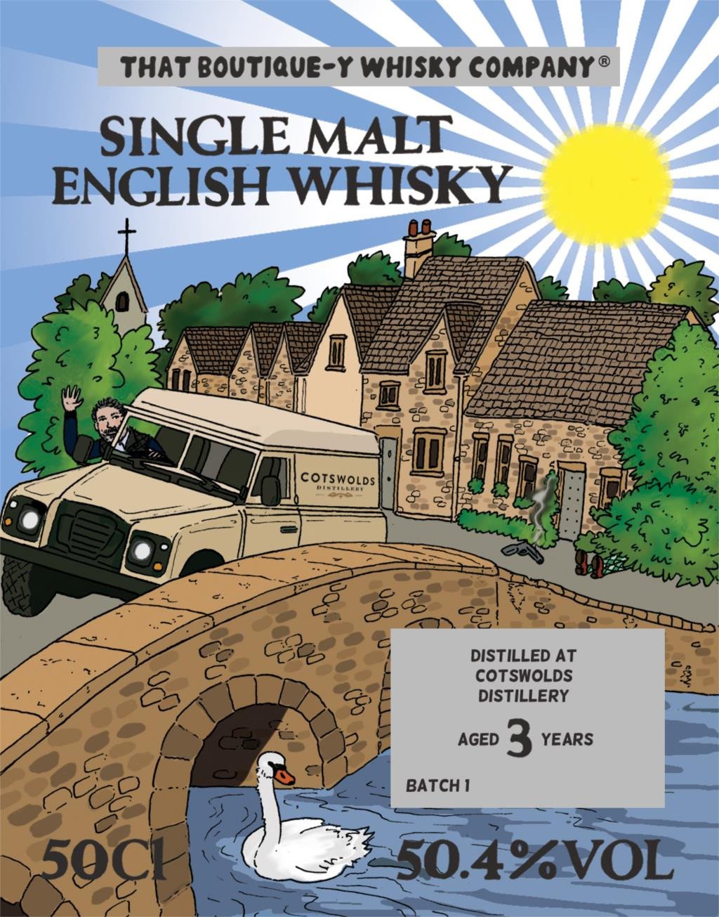 This is the first batch of Cotswolds single malt English whisky That Boutique-y Whisky Company's has ever bottled! The Cotswolds Distillery has been creating fine spirits in the great English countryside with locally grown barley since 2014 and this delightful young whisky should prove no exception. The label art features the quaint and picturesque distillery on a beautifully sunny day – and look – a familiar, friendly face is waving to you! Although, it does look like there might be something sinister under that hedge...