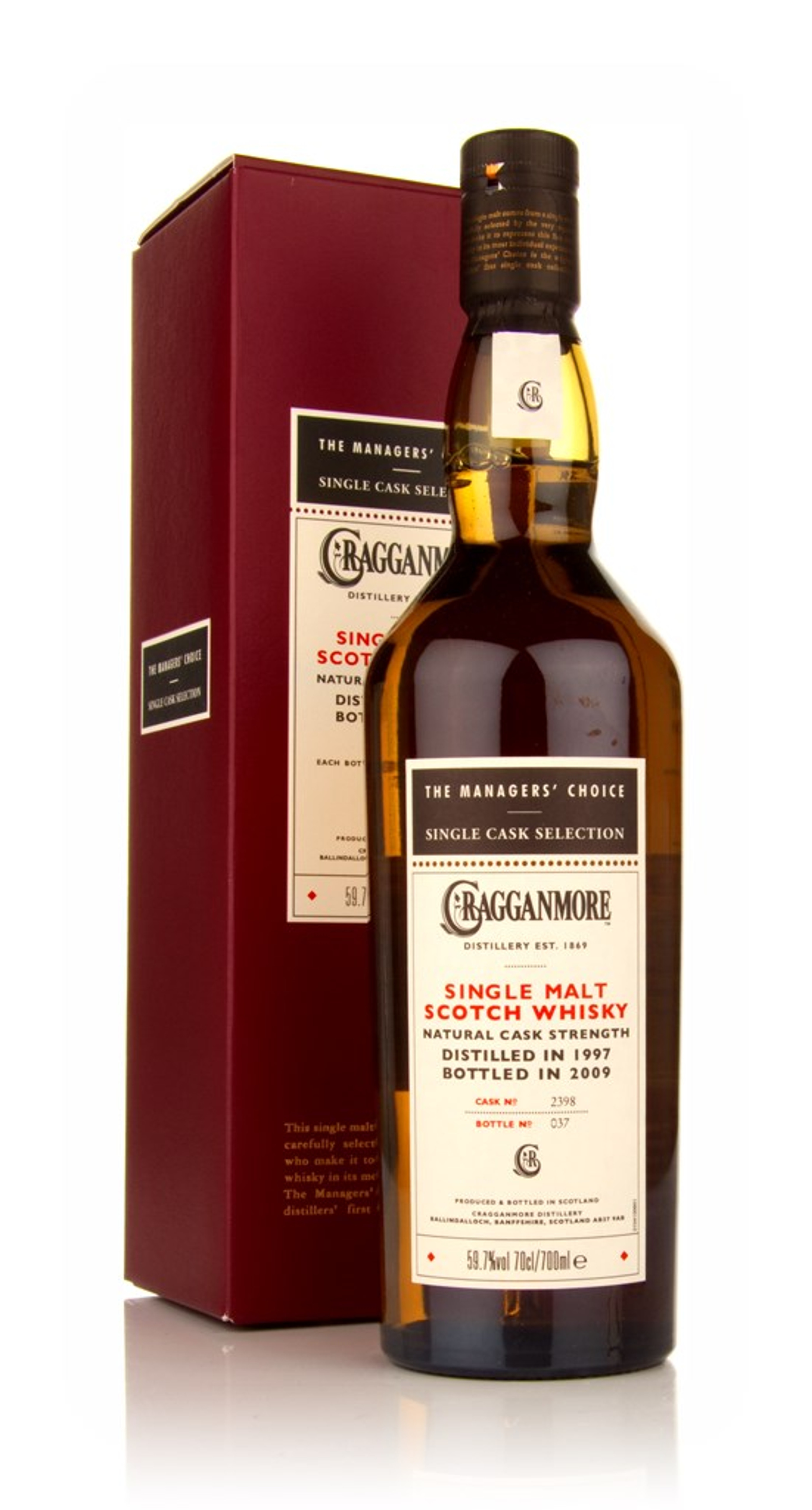 This Manager's Choice Cragganmore was distilled in 1997 and matured in single cask 2398 before bottling in 2009 at cask strength. Each bottle is individually numbered.