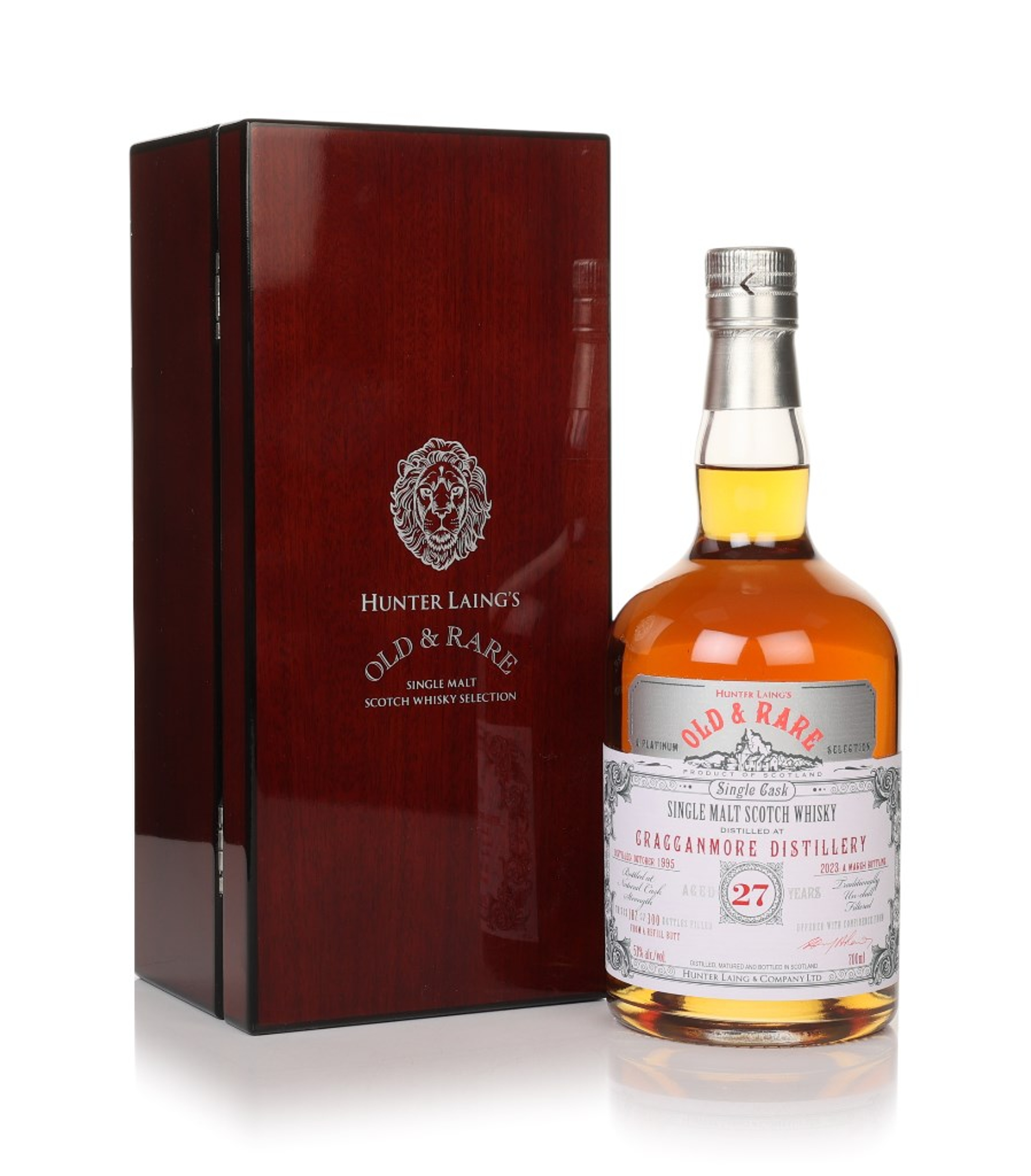 This generously aged single malt from the Cragganmore distillery joins the Old & Rare Platinum collection from indie bottler Hunter Laing. Distilled in October 1995, the whisky spent the next 27 years maturing in a refill butt, yielding a total of 300 bottles when it was opened in March 2023.
