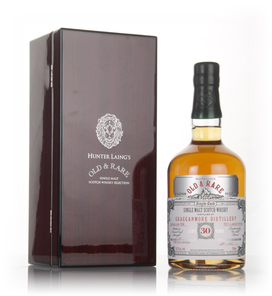 Single cask Cragganmore - not a common sight, as much of their spirit makes its way into blends. This one was particularly well-aged, being distilled in Jun 1986 and maturing in a refill hogshead for 30 years, until January 2017. 167 bottles were produced for Hunter Laing's Old & Rare Platinum range.