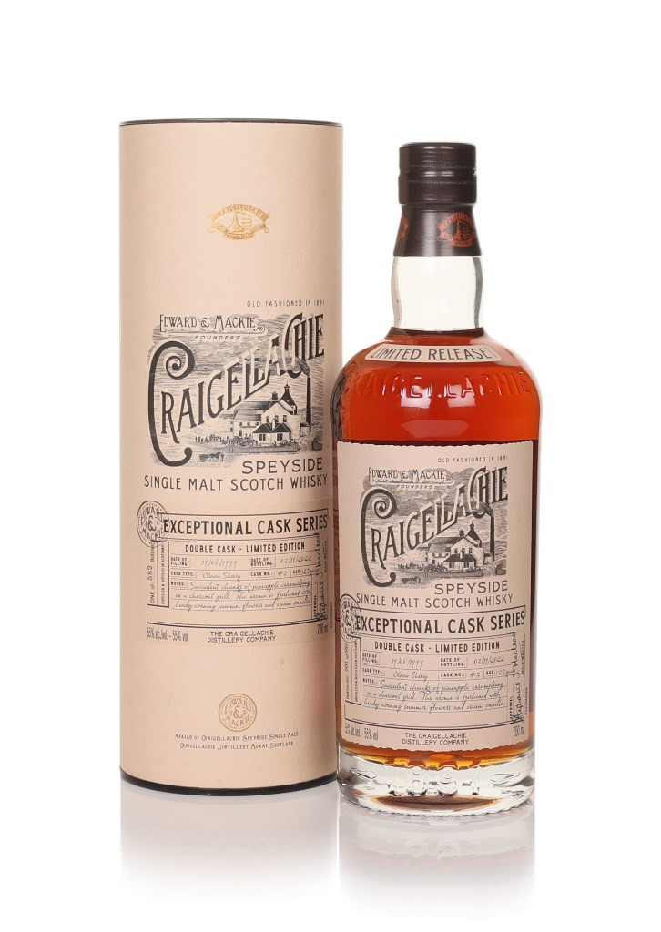 A single malt Scotch whisky from Speyside distillery Craigellachie, distilled on 19 August 1999 and aged for 23 years in a single oloroso sherry cask (#3) until 582 bottles were filled on 3 November 2022 for La Maison du Whisky as part of the Exceptional Cask Series.
