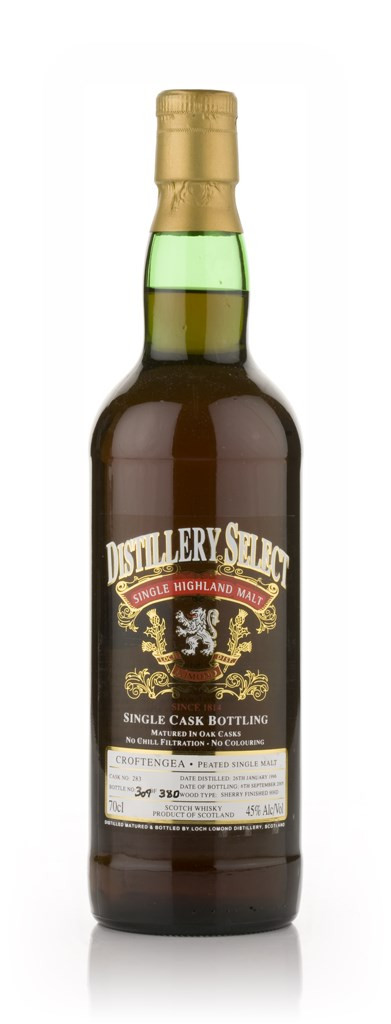 A sherry finished, peated single malt from Loch Lomond, part of a release of just 380 bottles, distilled in January 1996 and bottled in September 2005 under the Croftengea label.
